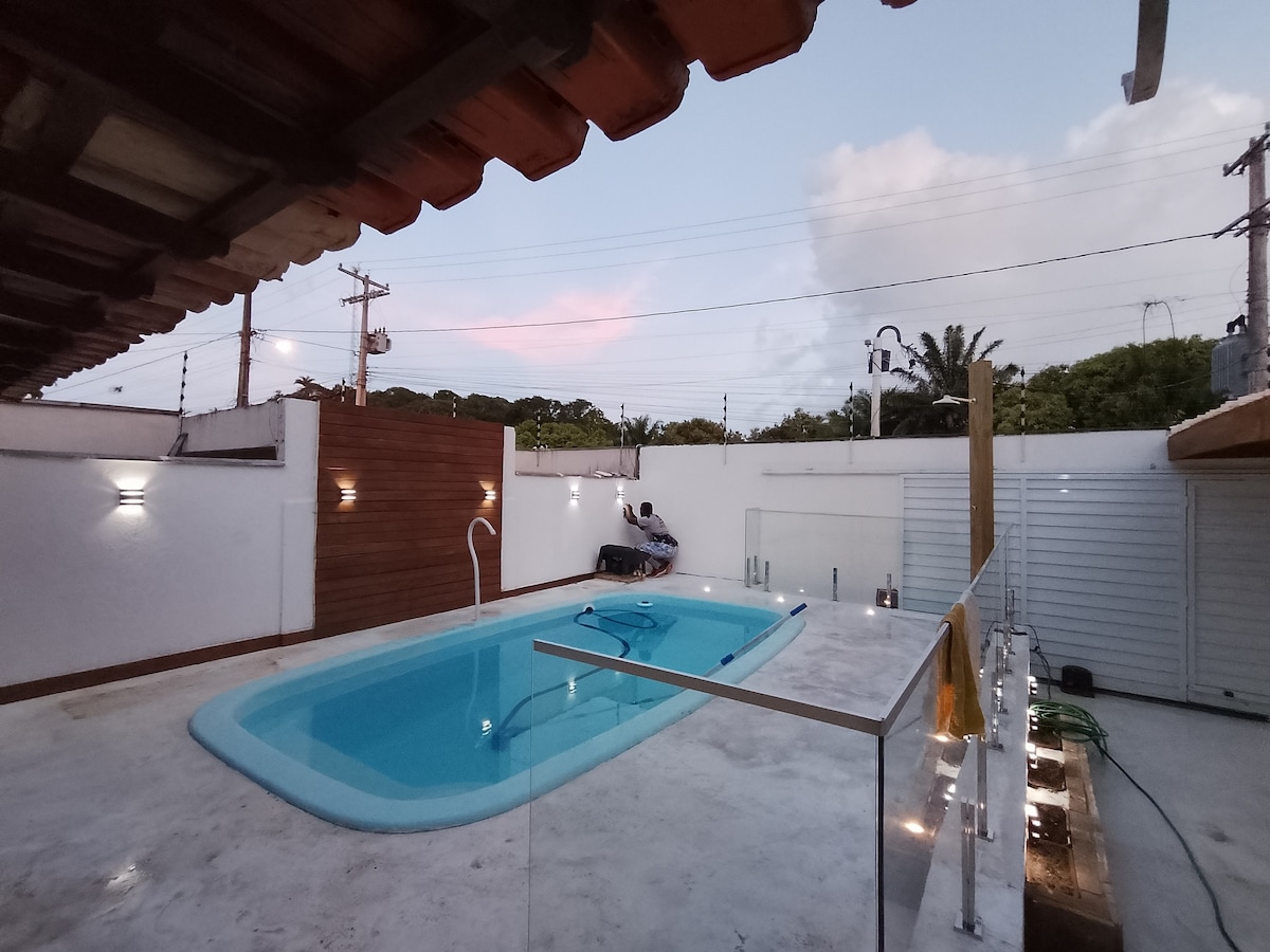 Հանգստացեք ամբողջ ընտանիքի և ընկերների հետ ծովից 50 մ հեռավորության վրա գտնվող այս տանը: Լողավազանով տուն Condominio Aguas de Olivenca/Bahia - ում ՝ մինչև 20 հոգու համար, 16 մահճակալ ։ Cassa - ն ունի 5 ննջասենյակ ՝ օդորակիչով, 2 առանձնաբաժին 1 սոցիալական լոգասենյակ 1 կիսալոգարան Հյուրասենյակ 51'հեռուստացույցով և երկնքով Խոհանոցն ավարտված է դուպլեքս սառնարանով, սառցարանով, 4 այրիչով եփուկով, էլեկտրական ջեռոցով, խմելու շատրվանով և այլն: Բարբեքյու Ինտերնետ Նշում. անկողնային սպիտակեղենն ու սրբիչները հասանելի չեն ։ Անհրաժեշտության դեպքում խնդրում ենք կապվել մեզ հետ: