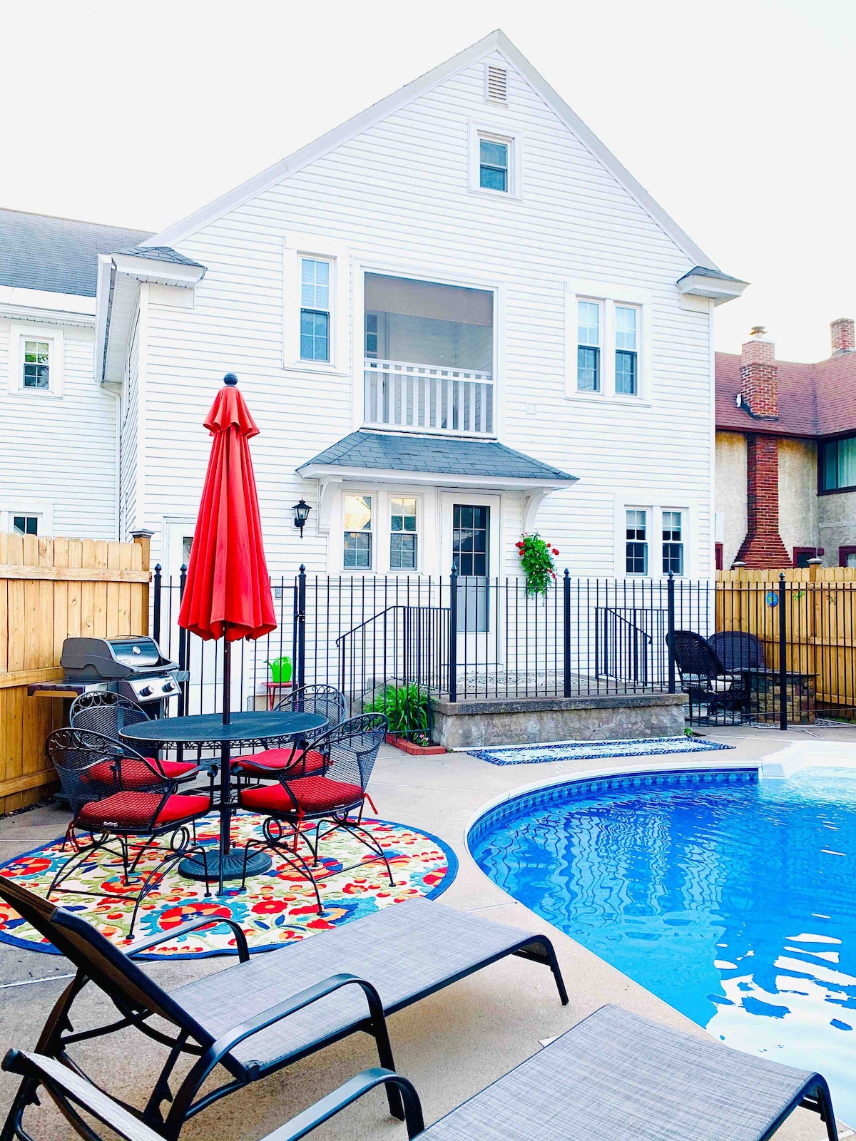 Welcome friends! Great house for baseball season. Each room is large, inviting, and offers wonderful natural lighting with its 56 windows. The house is equipped with a large eat-in kitchen and two private dining rooms with seating space for 14 guests. The main living room offers a custom feather down sectional accompanied by a beautiful chaise lounge and two wingback chairs. Head through the foyer and up the immaculate stairway to find four large bedrooms and two full bathrooms.