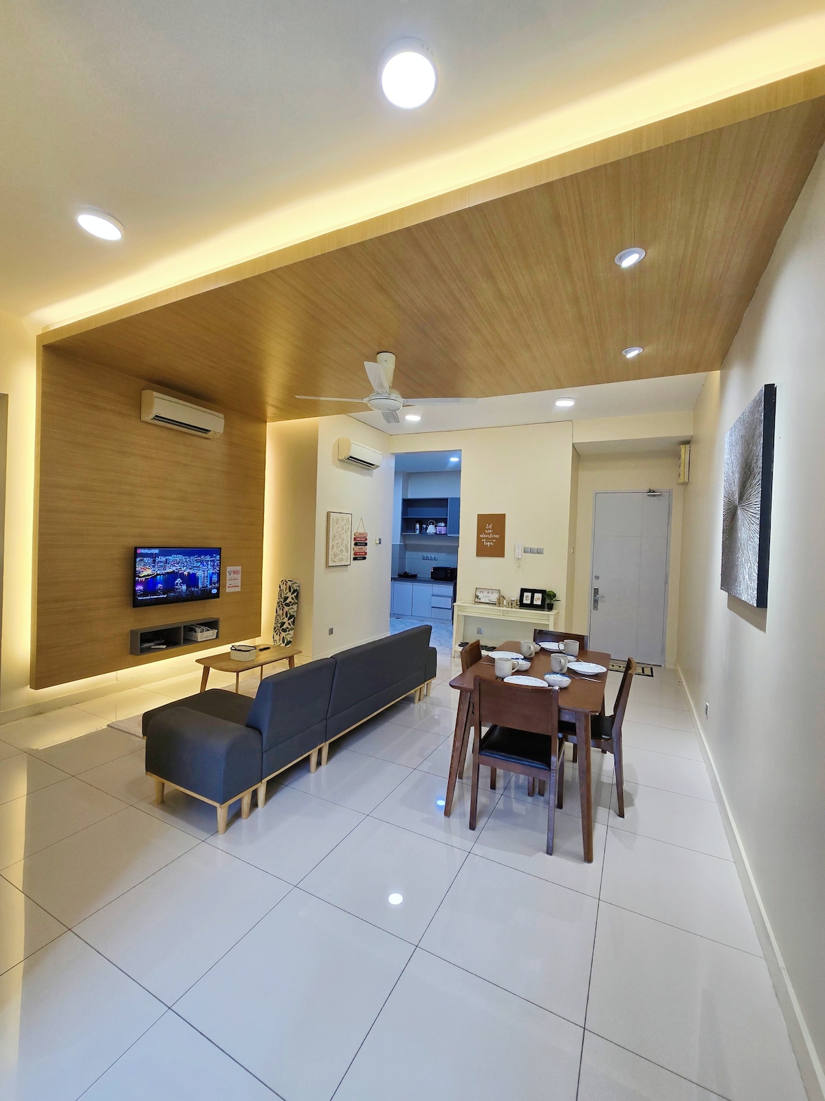 Բարի գալուստ մեր տուն: Անվճար Wi - Fi, առաջարկում է մնալու տեղեր Կոտա Կինաբալուում: Հյուրերը կարող են օգտվել կոնդոմինիումի ներքևում գտնվող առևտրի կենտրոնից ։ Այս հյուրատան յուրաքանչյուր սենյակ օդորակիչով է: - ում կա հյուրասենյակ հանգստացեք - ում զբաղված օրից հետո: Դուք կգտնեք թեյնիկ խոհանոցում: Մենք կարող ենք նաև մեքենաների վարձակալություն տրամադրել միջազգային օդանավակայանից մեր բնակարանին: Հուսով ենք ՝ ձեզ դուր եկավ ձեր ուղևորությունը դեպի Սաբահ ։ Մեր տունը գտնվում է Կոտա Կինաբալուի սրտում ՝ անմիջապես առևտրի կենտրոնի ներքևում:Կոտա Կինաբալուի ամենամեծ առևտրի կենտրոնը ։ Մեր տունը վեցերորդ հարկում է: Դրսում երկնաքեր կա:Լողավազանը մի քանի քայլ առաջ է: Ապահովում է լավ տրամադրություն տանը:Գիշերը կարող եք նաև խոսել մեր փոքրիկ զբոսայգում: Վայելեք Կոտա Կինաբալուին ։