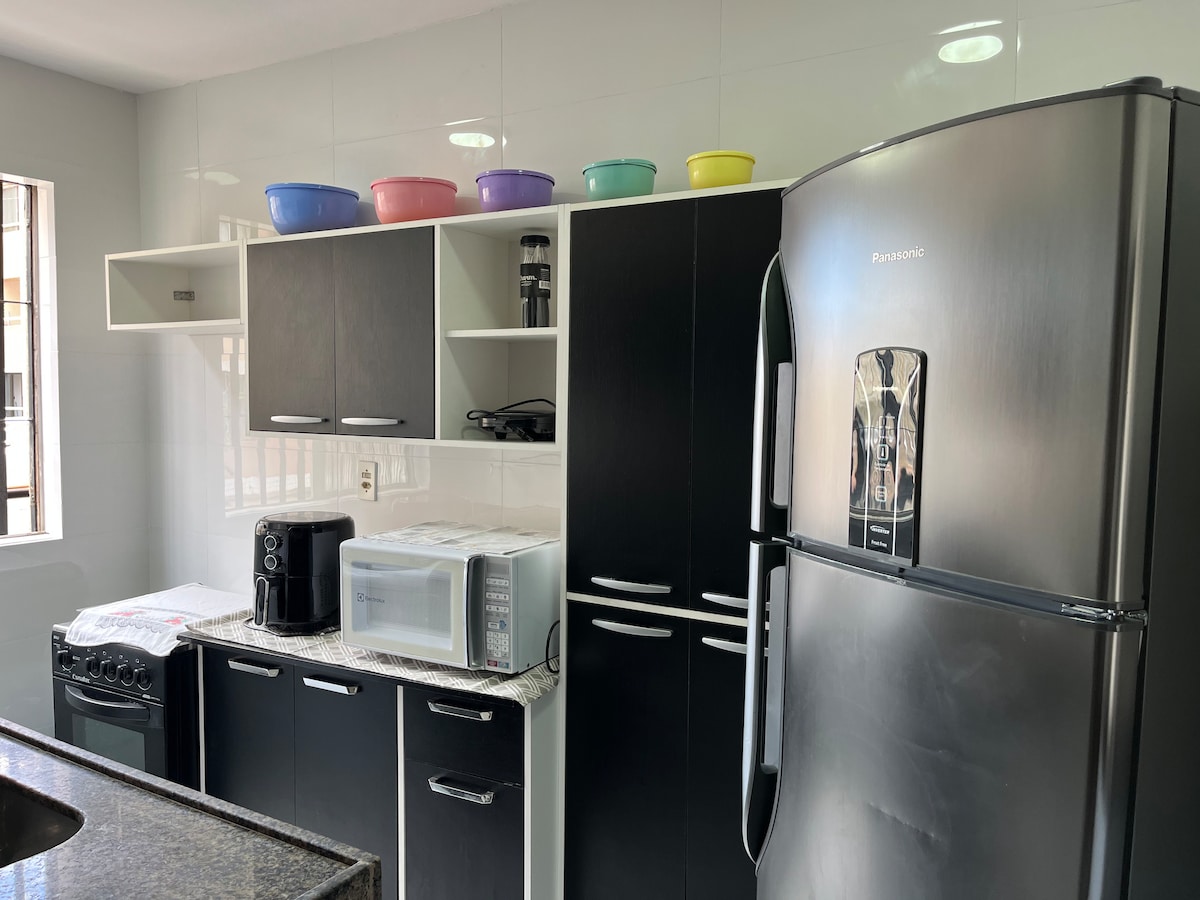 բնակարան առաջին հարկում , ավելի շատ հարմարություններով, ամբողջական խոհանոց ՝ ( գազօջախ, սառնարան, միկրոալիքային վառարան, օրորոց, պահարաններ, դարակներ և բոլոր տան շենքեր )՝ ( սեղան, բազկաթոռներ, փքաբլիթներ և պատշգամբի երկու աթոռ) Ննջասենյակ 1 ( մահճակալ, օդափոխիչ, հայելի, կոշիկի դարակ և դարակներ ) ննջասենյակ 2 (կոլացիա, AR, խոզապուխտ և սեղան, զգեստապահարան )՝ հյուրերի առաջարկած միջավայրն ավելի բարելավելու համար ։ Բնակարանը գտնվում է Ավ. Պեդրո Նեիվան ՝ քաղաքի լավագույն և ամենամեծ պողոտան ։