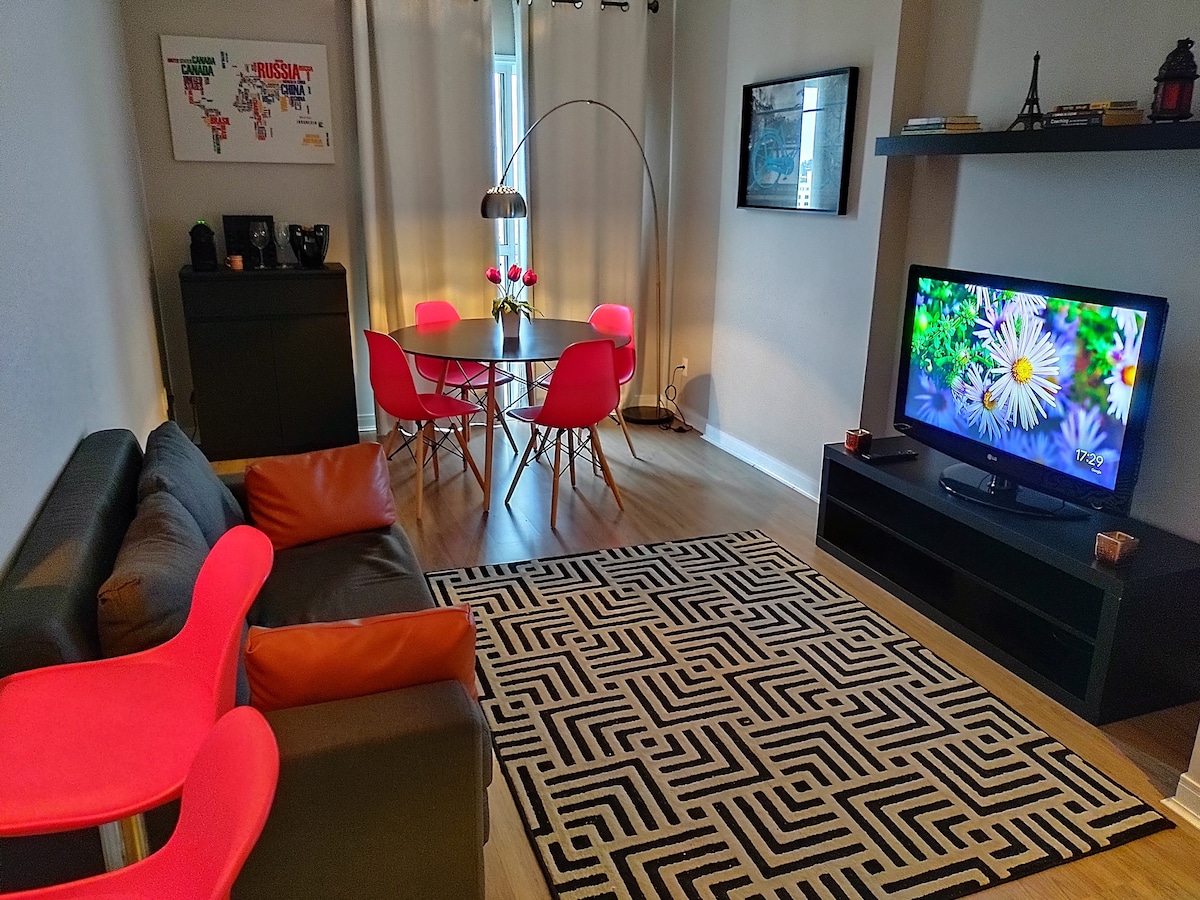 Very well-located apartment in the central area of Indaiatuba, next to the Jaraguá shopping mall, shops, markets, bars and restaurants, with easy and quick access to the region's road network and Viracopos airport. Spacious 52m² apartment, recently renovated, decorated and equipped, with a private bedroom, ideal for medium or short stays for leisure or work.