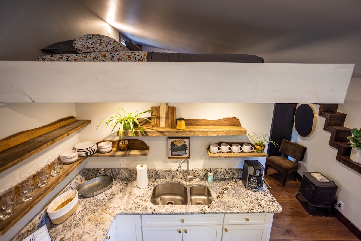 Ընկղմվեք Էվերգրանդ ժայռոտ լեռների անապատում, բայց դեռ քաղաքակրթության հասանելիության մեջ ։ Այս միկրոտնակը գտնվում է անտառի և ասպենի պուրակում ՝ հոսող հոսանքի երկայնքով ։ Հանգստացեք ։ Հանգստացեք դեպի հարմարավետություն և շքեղություն ՝ գանգուրվելով մեր յուրահատուկ դիզայնով պատուհանի նստարանին, որը նայում է տեսարանին ՝ լավ գրքով, հարմարավետ ֆիլմով, և վայելեք նաև մեր անհատականացված չոր շոգեբաղնիքը ՝ պատուհանի տեսարանով ։ Միկրոտնակ ՝ հիասքանչ տեսարանների, մաքուր օդի և խաղաղ բնության գրկում ։