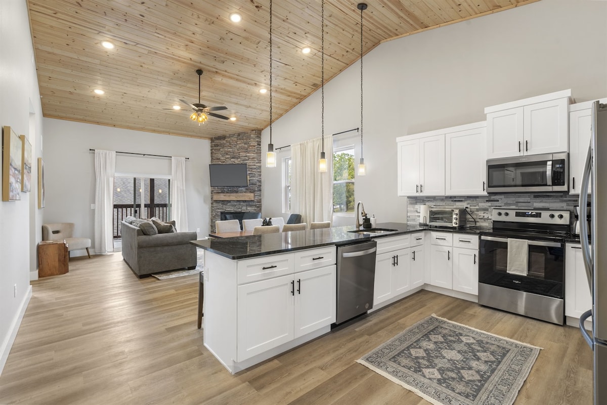 Create unforgettable memories with family and friends in this modern, professionally designed Lodge featuring Indoor and Outdoor community pools, a private hot tub on the lower deck, game room and MORE! Welcome to "Serenity Point Lodge"! - A couple of minutes from Silver Dollar City, the Marina, restaurants & bars – High-Speed Wi-fi – 2 King Beds & 2 Queen Beds - Built-in bunk beds – Game/TV room with a Sleeper Sofa – Roku Streaming TV's throughout – Dedicated work space