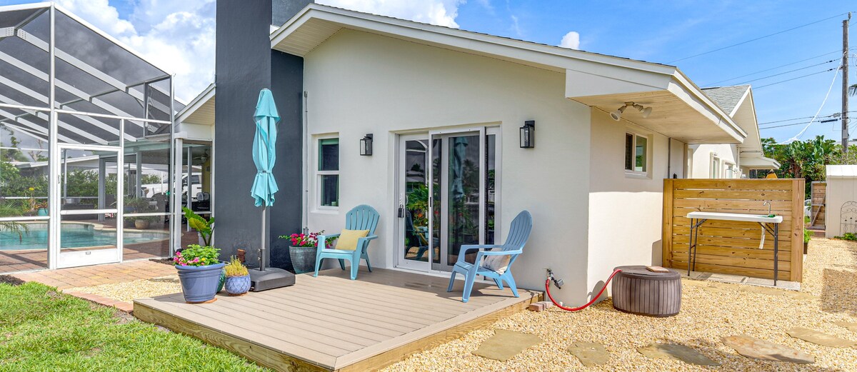 This amazing beachside house sparkles to enchant and delight unlike any other! This peaceful mid-century home took months of thoughtful professional design. With surf themes and well appointed, high-quality items to set a fun but tranquil mid-century 60s theme, you'll never want to leave! Easy 100 yards walk to publicly access the Ocean and loaded with everything to enjoy the beach. Relax by the HEATED swimming pool! No expense spared new furnishings and new OLED TVs for your stay in paradise.