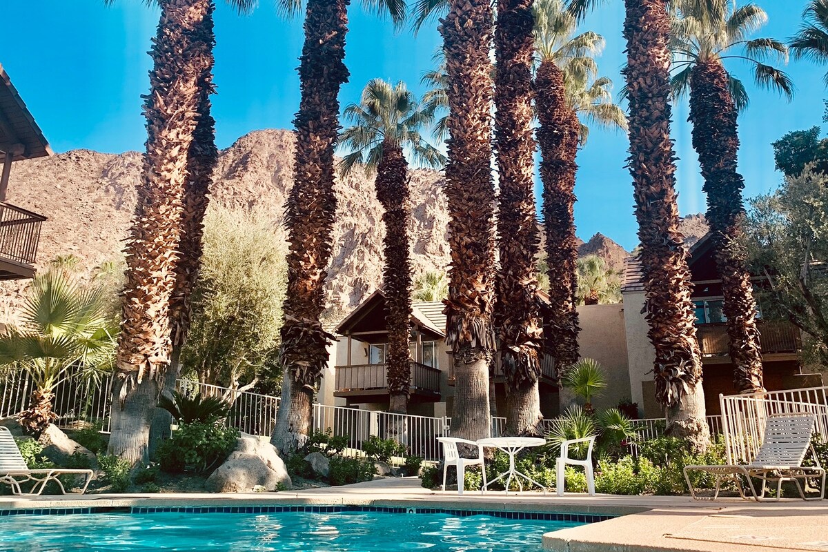 Այս գունագեղ, ժամանակակից 2 սենյակով/2 լոգասենյակով ստորին հարկի կոնդոմինիումը ձեր կատարյալ հանգիստն է Փալմ Դեզերթում 🌴 Փայլուն լողավազանից և ջակուզիից մի քանի քայլ հեռու գտնվող տարածքը լիովին կահավորված է հանգստանալու և ուժերը վերականգնելու համար անհրաժեշտ ամեն ինչով։ Վայելեք լեռների վրա արևամուտի տեսարանները՝ հավաքվելով կրակարանին մոտ ձեր սեփական, փարթամ օազիսում 🔥⛰️ Մենք սիրում ենք մորթոտ ընկերներին 🐾 Ամրագրման պահին գումարվում է տնային կենդանիների համար չվերադարձվող 100 ԱՄՆ դոլարի վճար։ Մանուկների համար կա նաև մանկական խաղահրապարակ և բարձր կերակրաթոռ։