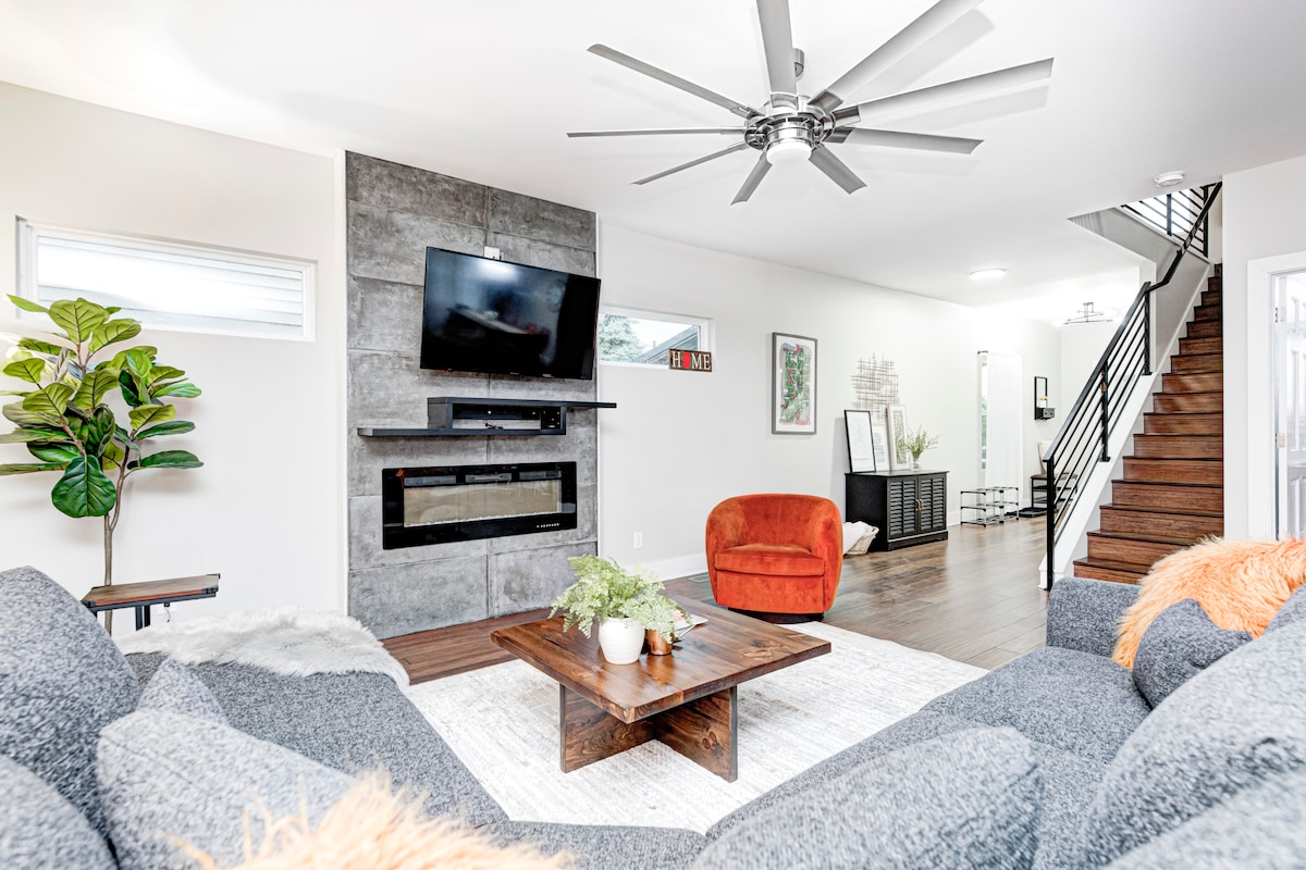 Experience Indy in this incredible 3 bedroom family home located in the revitalized Bates Hendricks neighborhood of Downtown Indianapolis. This house is the definition of Luxury with custom designs and furnishings. Relax in this spacious downtown comfort pad. The home is 1 miles from Lucas Oil Stadium and the Indiana Convention Center (5 minute drive). The house is .5 miles from Eli Lilly and Gainbridge Fieldhouse. Only 2 miles from Monument Circle. It is a spacious 3,000 square foot home.