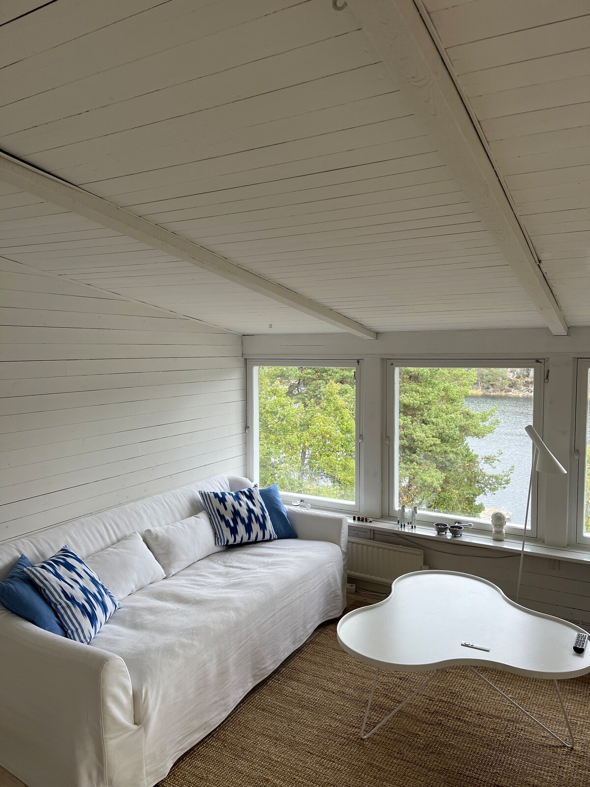 Հիանալի տեղադրություն ծովափին, ջրից ընդամենը 10 մետր հեռավորության վրա: Ստոկհոլմի մուտքի տեսարանով դուք կտեսնեք, թե ինչպես են նավակներն ու նավերը անցնում տան կողքով, որը ունի դեպի ծով նայող պատշգամբ։ Քոթեջը գտնվում է Ստոկհոլմի կենտրոնից ընդամենը 12 կմ հեռավորության վրա և առանձնացված է գլխավոր շենքից, որտեղ մենք ենք ապրում: Քայլելու և վազելու համար նախատեսված բնության արգելոցը գտնվում է տնակից մի քայլ հեռավորության վրա։ Մեր փայտե կառույցի վրա գտնվող փայտով աշխատող ջակուզին կարելի է վարձակալել մեկ երեկոյով: Կա ծովային կայակներ վարձակալելու հնարավորություն (2 հատ):