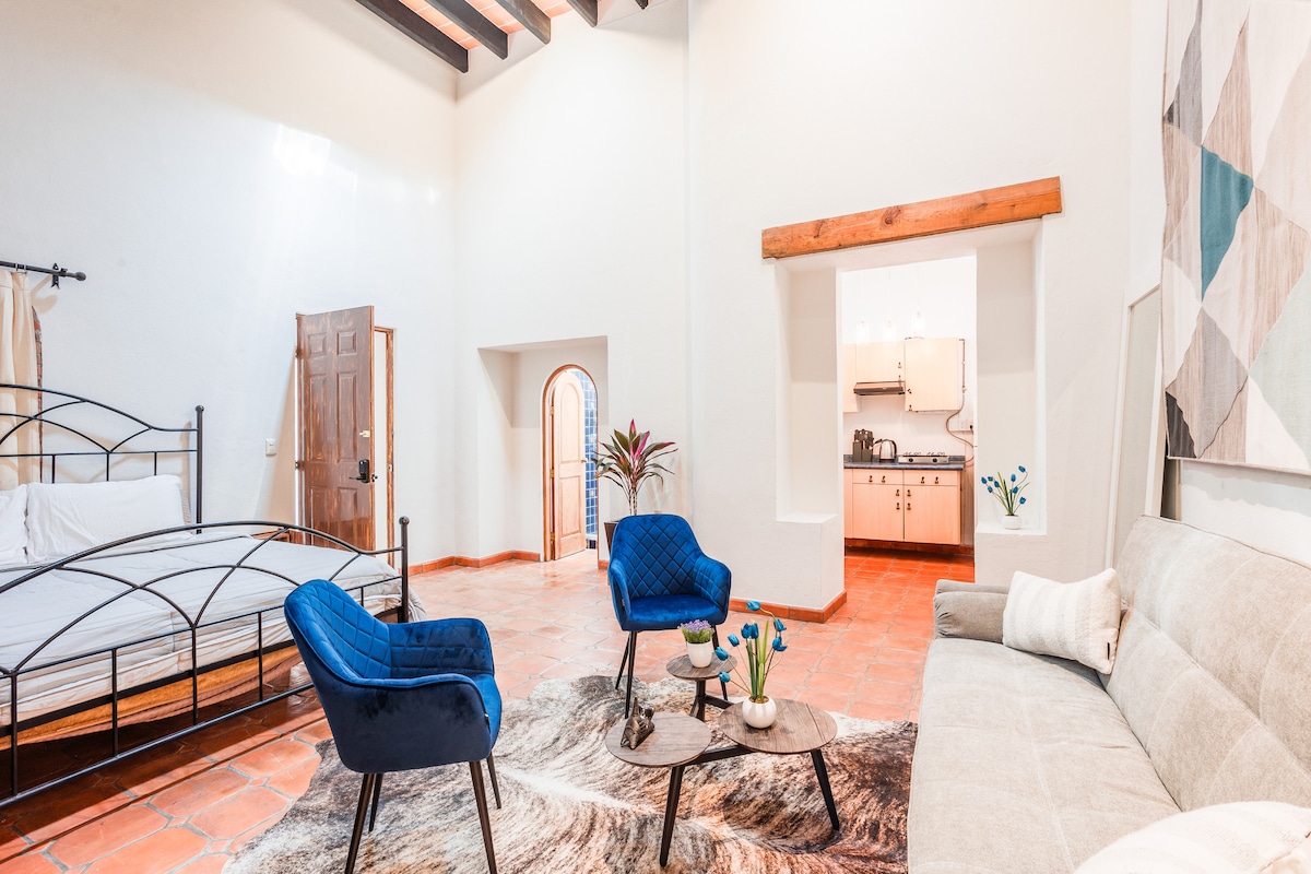 Բարի գալուստ Casa Recreo՝ հյուրանոցային ոճի մեծ սենյակ, որը գտնվում է Չենտրոյի ամենապահանջված փողոցներից մեկում՝ Խարդինից և խորհրդանշական Պարրոքիայից ընդամենը 7 րոպե քայլելու հեռավորության վրա։ Սան Միգելի լավագույն ռեստորաններով, խանութներով և տանիքներով շրջապատված այս մասնավոր բնակարանում կա հյուրանոցային որակի սպիտակեղենով փափուկ, մեծ չափերի մահճակալ, լիովին կահավորված խոհանոցիկ, սթրիմինգի համար Smart TV և օդորակիչ ու ջեռուցման համակարգ։ Հարմար է զույգերի կամ միայնակ ճանապարհորդների համար, որոնք հարմարավետություն և հարմարավետություն են փնտրում Սան Միգել դե Ալյենդեի սրտում։