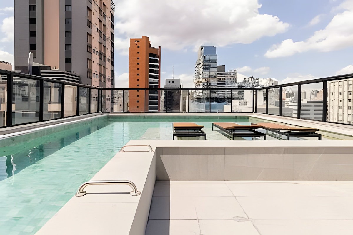 Ստուդիա You Faria Lima ՝ լողավազանով և թափուր մեքենայով ։