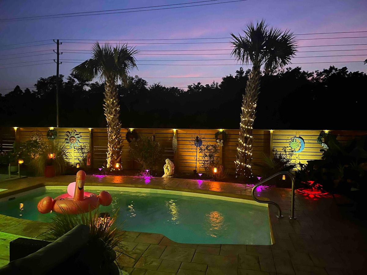 Welcome to Palm Haven — Great location, 3 min walk to beach, 5 blocks to Main Street shops, dining & entertainment. Thoughtfully designed for relaxation, entertainment and connection, this luxury home features a resort-style pool, massive game room, cozy magical indoor & outdoor theater, outdoor bar and lounge, gym, wellness room with sauna and massage chair, karaoke, selfie station, uniquely designed bedrooms where every room is a destination in itself, perfect for unforgettable group getaways.