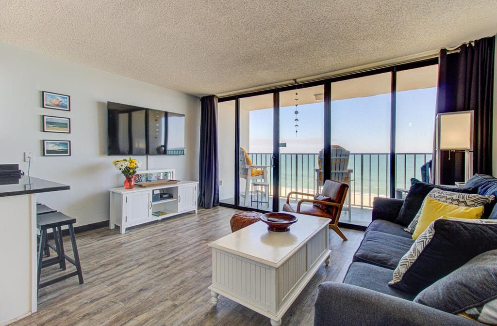 2 ննջասենյակով վերին հարկի կոնդոմինիում Peppertree Atlantic Beach Resort - ում, Prime location @resort 90 sec walk to beach. Լողափնյա շենք 18. ՔԱՐՏԵԶԸ ՏԵ ՛ Ս ԼՈՒՍԱՆԿԱՐՆԵՐԻ բաժնում ։ Ամբողջական խոհանոց, վերելակ, հանգստյան տան ամբողջական միջոցառումներ, մինիգոլֆ, փակ+բացօթյա լողավազաններ, ջակուզի, թենիս, լվացքի մեքենա/չորանոց ։ Զբոսնեք կինոթատրոններով, մթերային խանութներով, ռեստորաններով, սերֆինգի խանութներով և մանրածախ առևտրով ։ Ամբողջական ռենո ՝ 2020 թվականին ։ Ննջասենյակներ 6 (King+2 Twins+Sofabed, կամ 7 -8 ամուր տեղավորվում է երկտեղանի սենյակում գտնվող ձեր օդային ներքնակով )։ Ափսեներ և դանակ - պատառաքաղ/բաժակներ 6 հոգու համար ։ Ճաշելու տեղեր 6.
