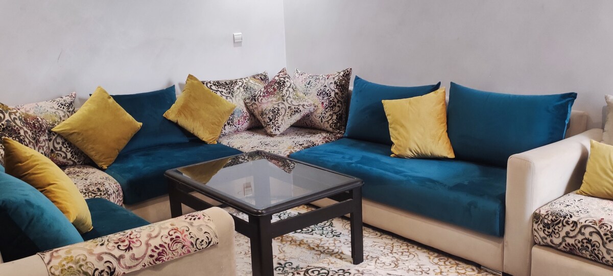 Հանգիստ հանգստի վայր | Ժամանակակից | Օդորակիչ | 15 րոպե լողափ | Wi-Fi | Netflix | 15 րոպե Ադրար Ագադիր մարզադաշտ Բարի գալուստ մեր ժամանակակից և նոր բնակարան, որը գտնվում է անվտանգ տարածքում՝ բոլոր հարմարություններին մոտ։ Այն ներառում է երկու հարմարավետ ննջասենյակ, շքեղ հյուրասենյակ ՝ սմարթ հեռուստացույցով և Netflix - ով, մաքուր լոգասենյակ և կահավորված խոհանոց ։ Դուք կվայելեք տաք մթնոլորտը, որը ձեզ կստիպի ձեզ տանը զգալ ժամանելու պահից 🧾 Ձեր այցի համար հասանելի է ամրագրման հաշիվ-ապրանքագիր