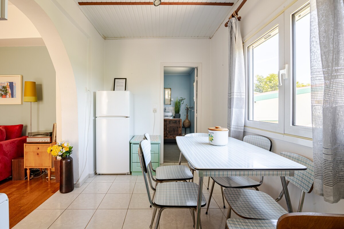 50sq.m. residence with yard recently renovated . It has a large living room with l40'' led TV, fireplace and comfortable sofas, a bedroom with a king size double bed 160cmX200cm and a comfortable mattress. The kitchen is fully equipped and the bathroom is quite spacious. In the shared courtyard you will find citrus trees, a barbeque area and bicycle storage. Μaximum accepted number is: 5 guests (2 persons on the double bed, 3 persons on the sofa beds in the living room).