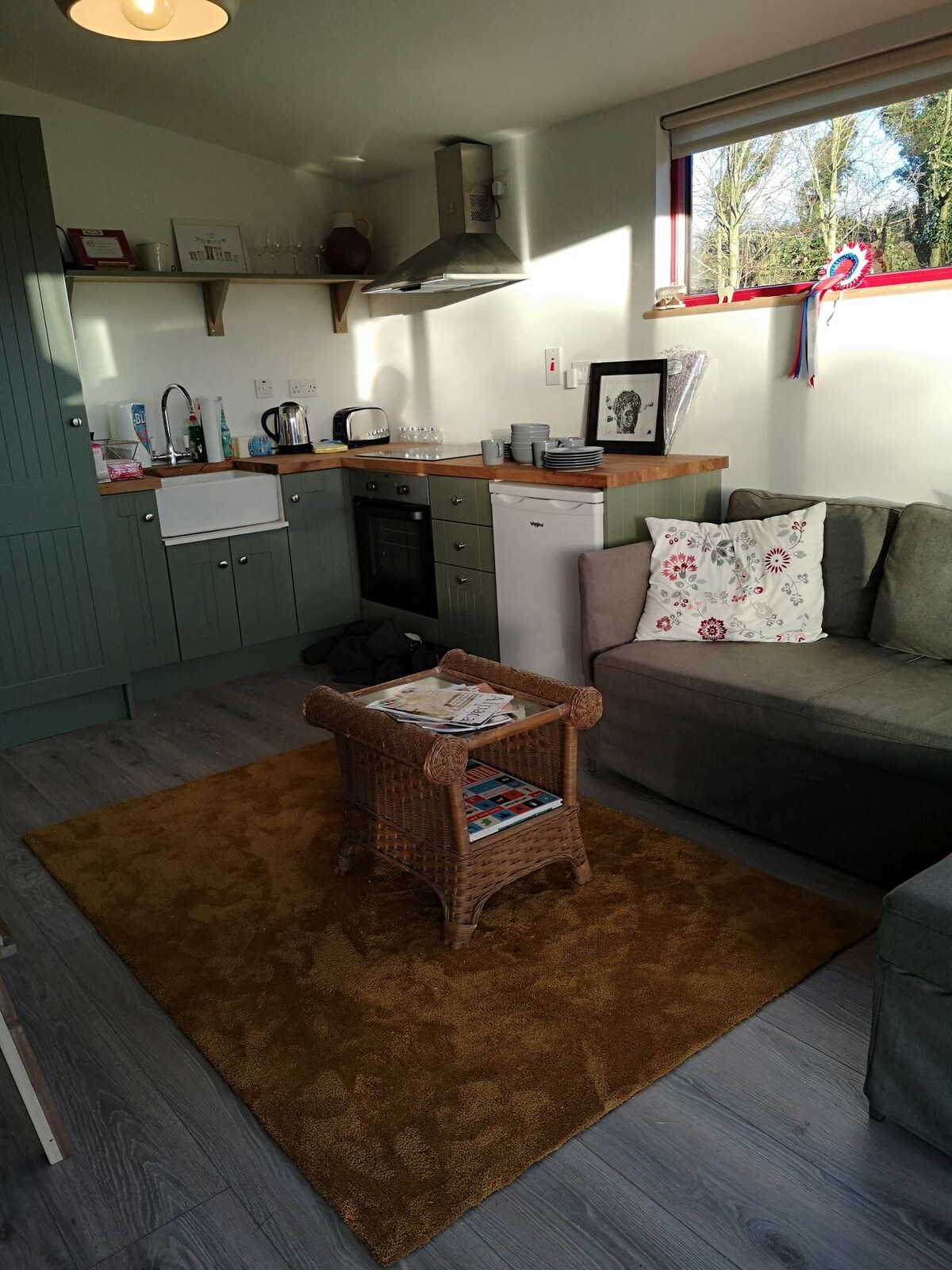 100 մետր հեռավորության վրա գեղեցիկ անտառային, արշավային, հեծանվային ուղի: Glendalough &Beach 20min drive.Restaurants 10mins & Mount Usher Gardens. Կա մի մեծ ջակուզի ՝ լուսավորությամբ, ինչպես նաև Bluetooth JBL բարձրախոս ։ Հիանալի միջոց ՝ մեկօրյա արշավից կամ սթրեսային շաբաթից հետո սառչելու համար ։ Հանգստացեք հարմարավետ հյուրասրահում ՝ կաբելային հեռուստատեսությամբ, Wi - Fi - ով և հանգիստ խաղաղությամբ ։
