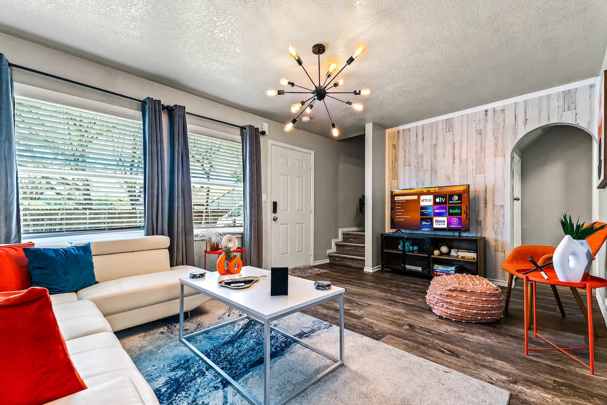 Վայելեք այս շքեղ թաունհաուսում բնակվելու լավագույն վայրերը ։ Վայելեք ամեն ինչ ՝ ձեր սիրտը պատրաստելով լիովին կահավորված շքեղ խոհանոցում, մինչև 86« հեռուստացույցի» առջև (YouTube TV, Netflix, Disney +), կամ պարզապես վայելեք կոկտեյլ հետևի պատիոյում: Շքեղ սպիտակեղեն (1200 թելերով սավաններ, RH սրբիչներ, զարմանահրաշ ներքնակներ), լավ կահավորված լոգասենյակներ, առանձնասենյակ և այլն ։ Եթե բիզնես ուղևորությունը ձեր խաղն է, վայելեք գերարագ WiFi և ամբողջական գրասեղան ձեր աշխատանքային տարածքի համար: