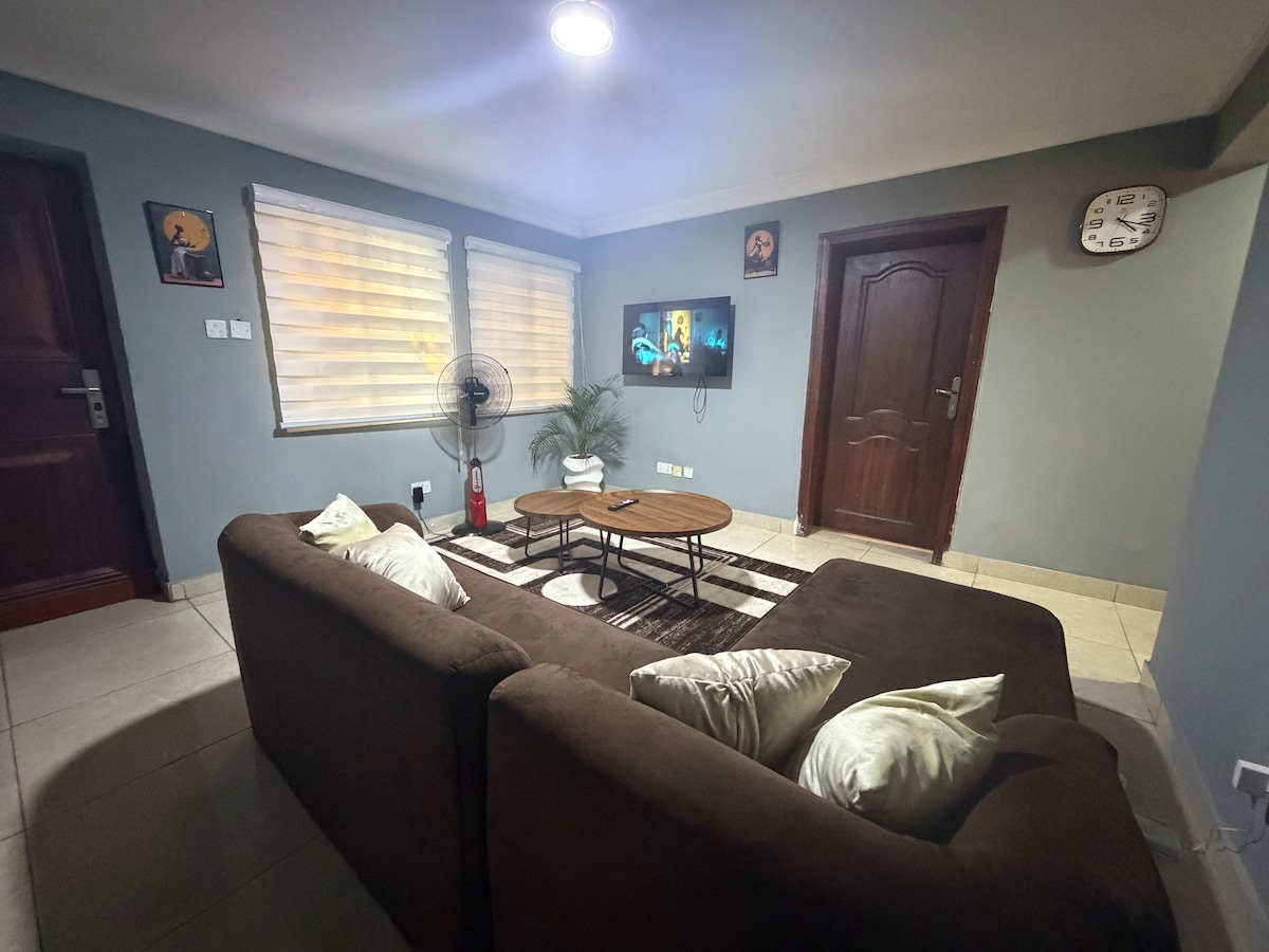 Այս շողշողուն մաքուր գործադիր 2 ննջասենյակով բնակարանն ունի ժամանակակից սենյակներ, որտեղ կան այցելուներ, զուգարաններ, սուպեր մահճակալ բոլոր սենյակներում և շատ ընդարձակ ու ահռելի: Անսահմանափակ արագ WI - FI, 43inche Smart TV բոլոր սենյակներում և 55 դյույմ Smart Tv նիստերի դահլիճում: Ջրատաքացուցիչ, Օդորակիչ, Netflix, YouTube, dstv: Շերտավարագույրներով քոթոններ, ջրային թեյնիկ, շուրջօրյա էլեկտրաէներգիա A ցանցից ։ Առավելագույն անվտանգություն միատեսակ պահակախմբերի և վարժեցված պահապան շան հետ ։ Ընդարձակ և մաքուր միացություն ՝ բավականաչափ կայանատեղով ։