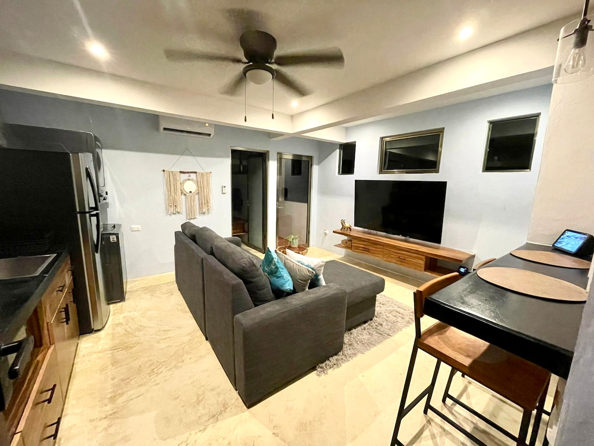 Վերադարձեք և հանգստացեք այս հանգիստ, ոճային տարածքում ։ Գտնվում է 1 - ին հարկում, ընդարձակ մեկ սենյականոց բնակարան: Հարմարավետ լրիվ չափի մահճակալ և 150 -179 սմ մահճակալ ։ Անձրևային ցնցուղով, լաունջ տարածքով, սմարթ հեռուստացույցով, բաց խոհանոցում կա սառնարան, գազօջախ, միկրոալիքային վառարան, մինի ջեռոց, Nespresso մեքենա, թեյնիկ, բլենդեր, լվացքի մեքենա և չորանոց ՝ կերակուր պատրաստելու համար: Այն հագեցած է 2 օդորակիչով, օդափոխիչներով ՝ լավագույն հարմարավետության համար ։ Amazon - ի Alexa - ն, գերարագ ինտերնետը, խելացի լույսի առանձնահատկությունները եւ ձայնային ապացուցված պատուհանները: