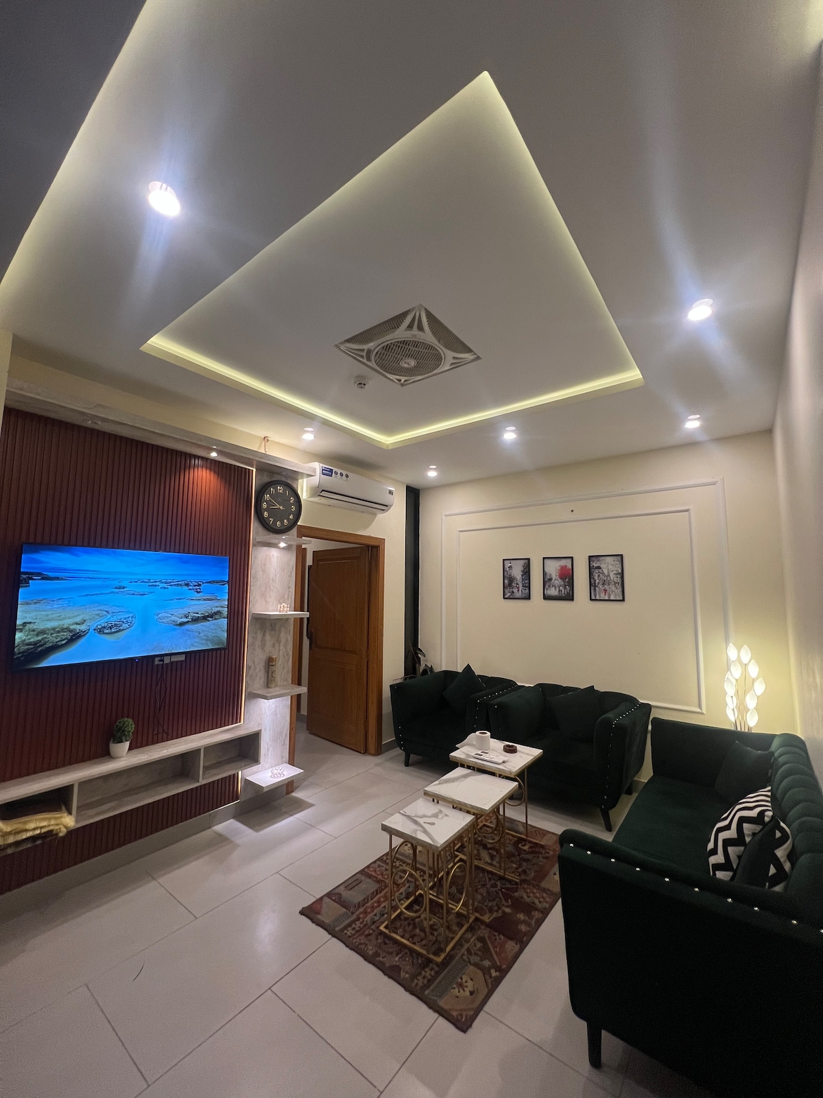 Welcome to your modern and comfortable one-bedroom apartment in Bahria Town Phase 7, Islamabad, a secure and well maintained gated community known for its peaceful environment and easy access to main city routes. This fully private apartment features a comfortable bedroom, a stylish living area with smart TV, a fully equipped kitchen, and a clean modern bathroom. Designed for both short and long stays, it’s perfect for guests who value comfort, cleanliness, and privacy Enjoy self check-in .
