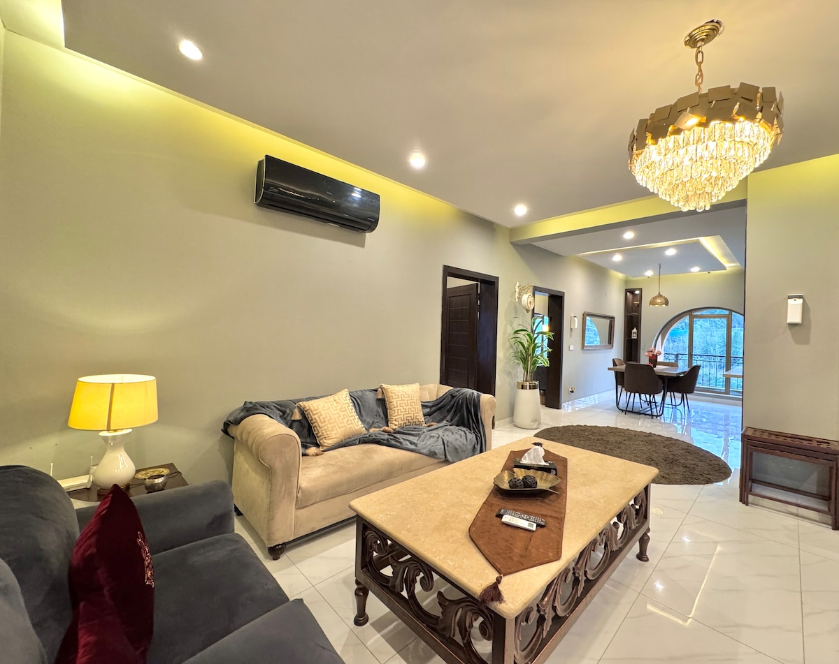Բարի գալուստ մեր նորաոճ երկսենյականոց առանձնաբաժիններ DHA 5 Իսլամաբադում ։ Վայելեք արագ ուղևորության հարմարավետությունը և հանգստացեք գեղեցիկ դեկորով և լիովին կահավորված տնային կինոթատրոնով տարածքում: Իդեալական է հարմարավետություն և ժամանց փնտրող ճանապարհորդների համար ՝ այս հարմարավետ հանգիստն առաջարկում է ժամանակակից հարմարություններ հիմնական վայրում: Այն ամբողջական առանձին մաս է ՝ առանձին մուտքով և կայանատեղիով, ընտանիքների համար հարմար, հետևաբար ՝ շատ ապահով և խաղաղ ։ Երեկույթներ և բարձր երաժշտություն չի թույլատրվում ։ Չամուսնացած զույգերին չի թույլատրվում ։