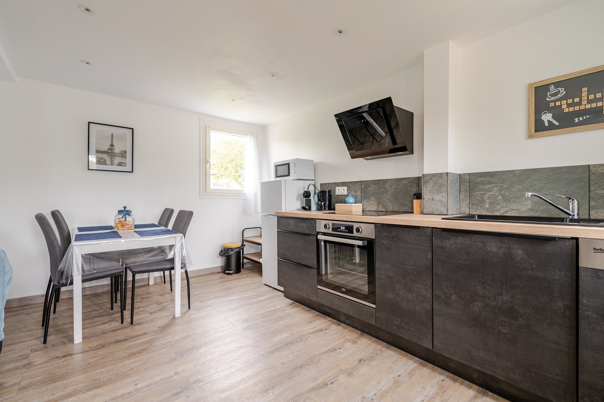 Հանգստացեք այս հանգիստ և ոճային տարածքում ։ 25mn Paris EST, 20mn DISNEY, 10mn walk from St Étienne Cathedral. բոլոր հարմարությունները մոտակայքում Եկեք և մնացեք այս գեղեցիկ հարմարավետ դուպլեքսում ՝ իր բացօթյա տարածքով ։ Լիովին կահավորված խոհանոց, վերևի ննջասենյակ ՝ ցնցուղի սենյակով և զուգարանակոնքով ։ Սրբիչներ և անկողնային սպիտակեղեն Լոգանքի գել Ողջույնի սկուտեղ ՝ թեյնիկով Հովանոցային մահճակալ ՝ ըստ պահանջի Օդափոխիչ ՝ ըստ պահանջի Անվճար կայանատեղի փողոցում Վճարովի կայանատեղի մոտակայքում ։
