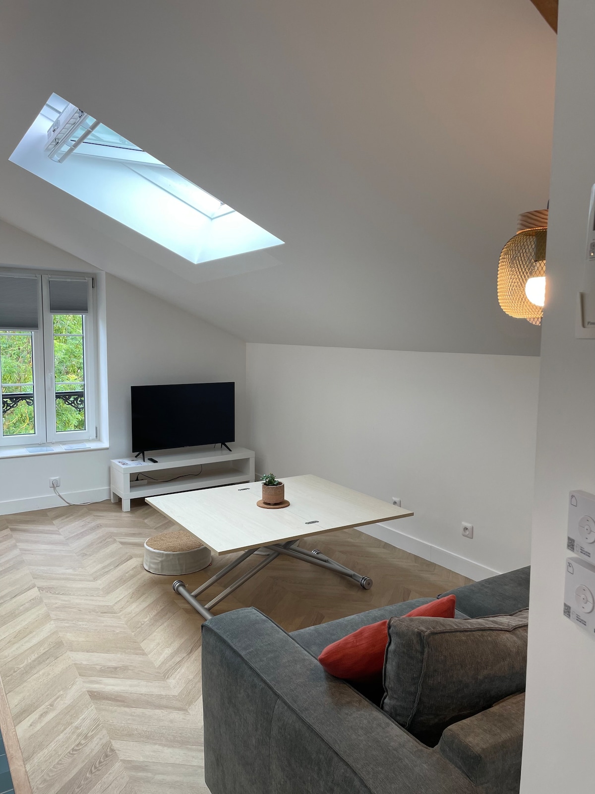 Le charme unique de la Suite Love & Relax, situé à Esbly, à seulement une rue de la gare. Un espace moderne et élégant, conçu pour vous offrir une expérience de détente et de confort absolus. L’appartement dispose d’un jacuzzi privé. La cuisine entièrement équipée. Profitez de notre literie haut de gamme, éclairage réglable, vous permettant de créer une ambiance tamisée selon vos envies. Une télévision avec Netflix est à votre disposition.