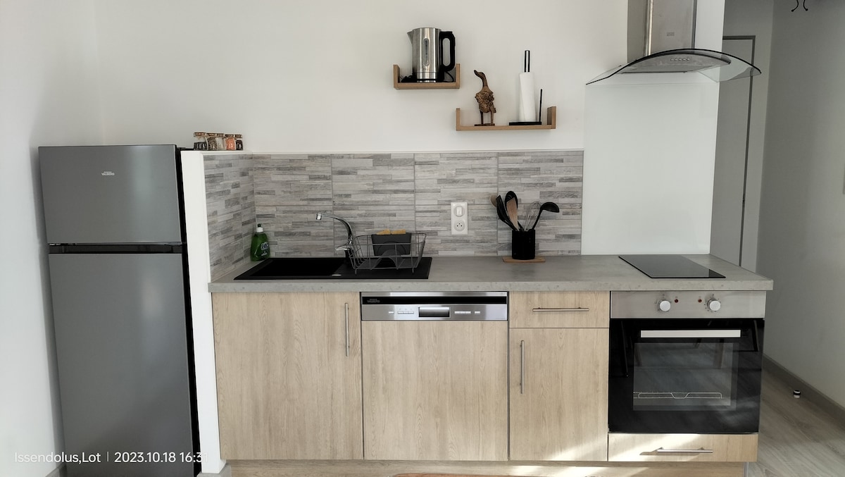 Chalet bâti sur notre terrain d'habitation Idéal pour les week-ends et séjours en toutes saisons. Dans un environnement calme, à la campagne sur le Causse, le studio de jardin situé sur la commune d'Issendolus et proches des sites touristiques les plus connus: Détendez-vous dans ce logement calme et élégant. Vous serez séduits par son confort, son calme, son aménagement très fonctionnel et son SPA sur la terrasse uniquement pour vous.