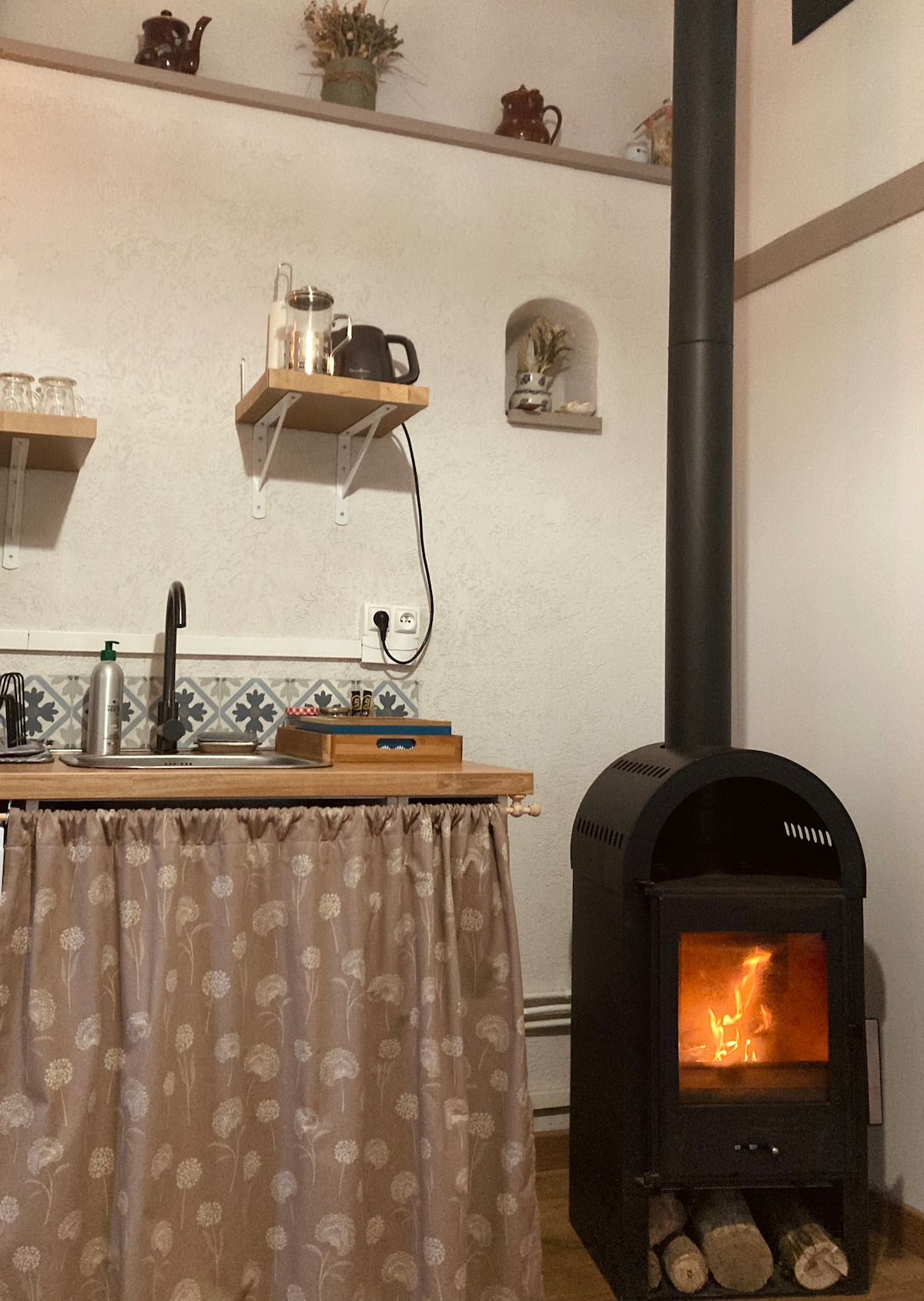Հարմարավետ ֆերմերանոցային մթնոլորտ՝ վառված սալօջախով. պատրաստեք/ծիծաղեք/հավաքվեք