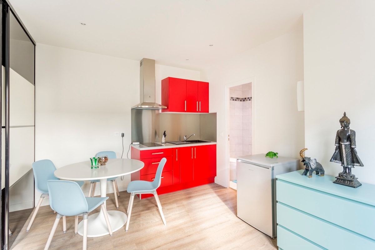 Contemporary design in Hotel-quality living, with a feel of home. A short walking distance to multiple tram and metro stops, this lovely and quiet Studio apartment is perfect for solo travelers/couples wishing to explore the city. A tram station 50m from the apartment and two metro stations one stop away either way, to take you into Central Paris within 25min.