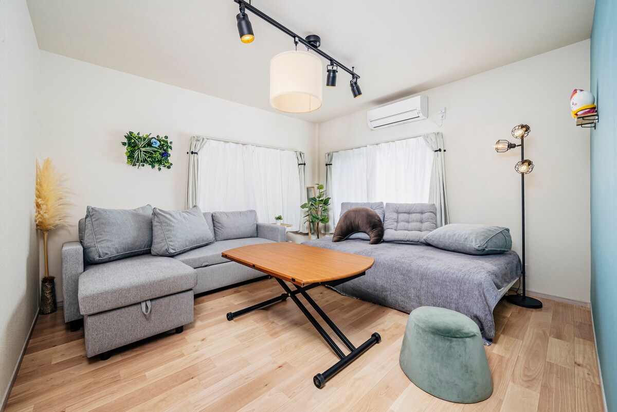Newly renovated detached house (Sep 2025) at Itabashi 1-54-1, Tokyo, just 2-min walk to Itabashi Station. Bright and spacious with 2 bedrooms, large living room, The first floor features a KTV, so after a full day of sightseeing, you can come home to relax and fully enjoy some entertainment. and rooftop terrace. Steps from restaurants, cafés, shops, and supermarkets. JR Saikyo Line reaches Shinjuku in 9 min, Ikebukuro in 3 min. Safe neighborhood with traditional charm. Coin parking 50m away.