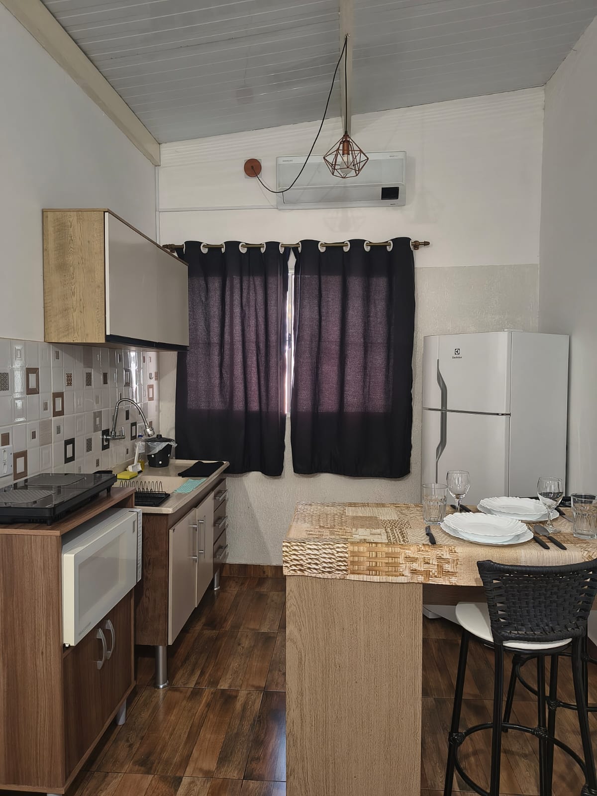 ***atenção *** (Horários de check-in a partir das 15 horas) O apartamento é no primeiro andar com 2 quartos, cozinha, sala e lavanderia. Está completo com geladeira, fogão, microondas, máquina de lavar. Na sala sofá retrátil, mesa de jantar com 4 cadeiras, poltronas, painel com televisão, internet. Nos quartos possuem uma cama box casal, 2 colchões de solteiro, lençol, cobertor e travesseiros, armário espaçoso, cadeira e armário de escritorio. E a garagem apenas 1 vaga.
