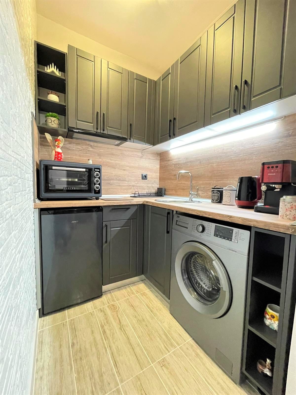 Մեր ստուդիան շատ լուսավոր և մաքուր է ՝ հաճելի զարդարանքներով: Այն ունի հարմարավետ հյուրասենյակ, հեքիաթային քնելու տարածք, լիովին կահավորված խոհանոց և ճաշասենյակ, ինչպես նաև հատուկ աշխատանքային տարածք ՝ լրացուցիչ մոնիտորով և գերհարմարավետ գեյմերի աթոռով ։ Եվ Մշակույթի ազգային պալատով ընդամենը մեկ թաղամաս հեռավորության վրա, իսկ Վիտոշկա փողոցը ՝ անկյունից, դուք կհայտնվեք կատարյալ վայրում ՝ ուսումնասիրելու այն ամենը, ինչ առաջարկում է Սոֆիան ։