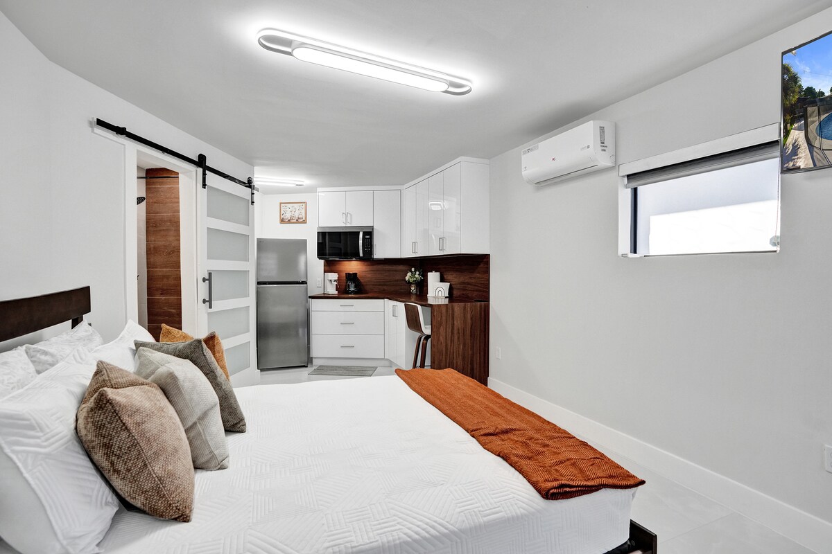 Մեր մասնավոր & հարմարավետ Hallandale Guesthouse - ը գտնվում է բոլոր հիմնական տեսարժան վայրերի մոտ և հագեցած է այն ամենով, ինչ անհրաժեշտ է ձեր այցը վայելելու համար: Ֆլորիդա ։ Աշխատո ՞ ւմ և ճամփորդո ՞ ւմ ։ Օգտվեք մեր աշխատանքային տարածքից, գլորվող գրասեղանի աթոռից, ալեկոծության պաշտպաններից, սմարթ լամպերից և ԱՐԱԳ Wi - Fi - ից ։ Առանց մուտքի առանձին կայանատեղի և մուտք, առանց բանալիների թվային կոդ ՝ ինքնուրույն ժամանման համար ։ Խոհանոցը և սուրճի բարը լիովին համալրված են կերակուրների և կոֆեինի խմիչքների համար ։ Մոտակայքում գտնվող լողափերը, Ft Lauderdale օդանավակայանը, Hard Rock - ը, Gulfstream Park - ը և այլն ։
