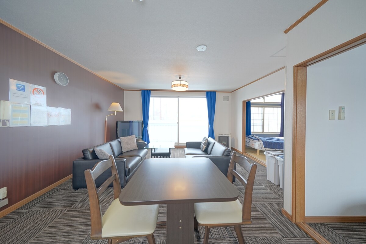 Newly built 2-bedroom apartment in central Kutchan, a 7-minute walk from JR Kutchan Station. HANAZONO Resort is a 10-minute drive and Grand Hirafu about 13 minutes away. Ideal for 3–4 friends, couples, or families visiting Niseko. The apartment features a spacious living room, equipped kitchen, ski storage, and fast Wi-Fi for relaxing after a day on the slopes. Restaurants, cafés, and a large supermarket are within walking distance. Enjoy local food and experience Niseko like a local.