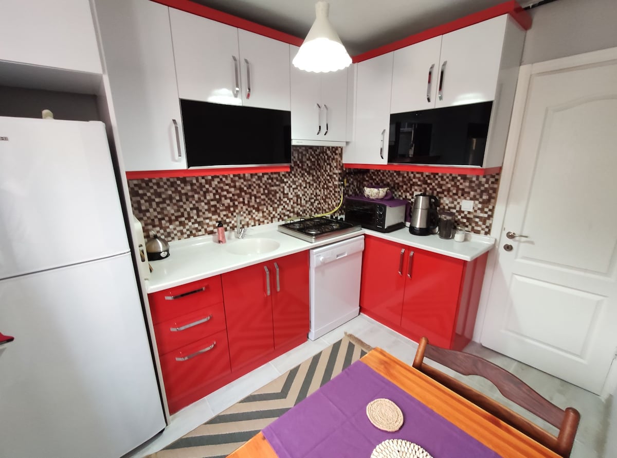 Դուք կարող եք մնալ նոր հարմարավետ, կոկիկ և լիովին վերանորոգված տանը Իզմիրի Կոնակ քաղաքի հանգիստ և սիրալիր թաղամասում ։ Տունն ունի այն ամենը, ինչ անհրաժեշտ է հանգիստ և հարմարավետ հանգստի համար ։ Տունը պատրաստված է մոխրագույն - սպիտակ - շագանակագույն երանգներով ՝ քաղցր փոքրիկ դեկորներով ։ Այն շատ մոտ է քաղաքի կենտրոնին, իսկ մետրոյի կայարանը ոտքով հեռավորության վրա է ։
