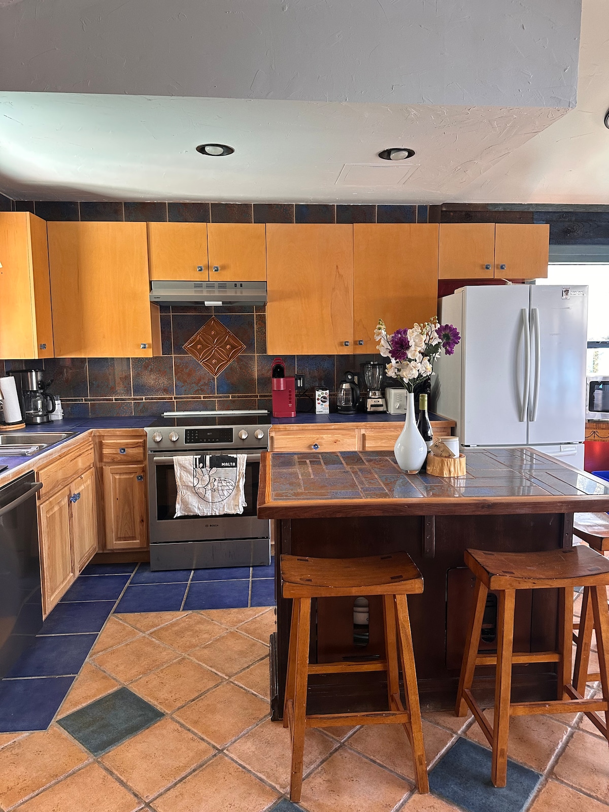 Beautiful rustic “Hill Country Modern” home on five acres with a view of our seasonal pond and the valley. My home incorporates the use of outdoor living space unlike any other. The patio and breezeway are integral parts of the usable space. One side of Sunrise House has a large living room with a fireplace and huge windows. The house has top-of-the-line fixtures and finishes, a mix of new and curated furniture and decor, and beautiful custom art.