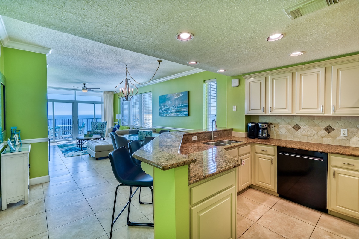 Նորացված 1 ննջասենյակով/ 2 լոգարանի կոնդոմինիում ՝ երկհարկանի մահճակալներով ։ Լողափի կողմը գտնվում է 19 - րդ հարկում ՝ զմրուխտյա ջրերի և կուսական սպիտակ ավազի լողափերի հիասքանչ տեսարաններով ։ Մեքսիկական ծոցը ։ Լիովին համալրված խոհանոց նոր գրանիտ countertops եւ կշտամբել տեխնիկա. Հուսալի արագ և գերարագ ինտերնետ ամբողջ ընթացքում: Հանգստավայրի հարմարությունները ներառում են մեծ լողավազան և ջակուզի, լողափնյա տիկի բար, որը մատուցում է սառեցված ըմպելիքներ և գարեջուր ։ Հրաշալի սրճարան, որը մատուցում է տաք նախաճաշ, պիցցա, սենդվիչներ և աղցաններ: