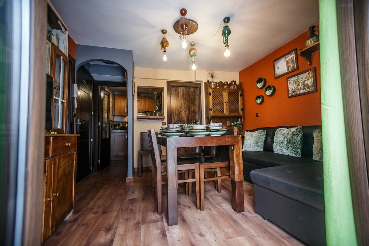 Հարմարավետ և լուսավոր բնակարան Խաենի մայրաքաղաքում, իդեալական է զբոսաշրջային այցերի համար։ Այն ունի հյուրասենյակ, կահավորված խոհանոց, հարմարավետ ննջասենյակ և լոգասենյակ, որոնք նախատեսված են գործնական և հաճելի հանգիստ ապահովելու համար։ Գտնվում է հանգիստ և լավ կապով ապահովված շենքում, որը կատարյալ է քաղաքը ճանաչելու և հեշտությամբ շրջելու համար։ Մուտքի մոտ շենքի մուտքը երեք աստիճանով է։ Ֆունկցիոնալ կացարան զույգերի, ընտանիքների կամ գործնական ուղևորությունների համար։