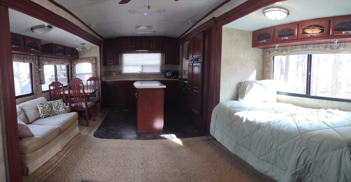 Այցելեք անմոռանալի գլեմփինգ փորձառություն այս հիշարժան վայրում ՝ վինտաժային Airstream - ում: Լրացված է բոլոր լրացուցիչ հարմարություններով ։ Հրաշալի սուրճի բար ՝ ձեր մասնավոր տախտակամածին նստած, լճակի ափից ընդամենը մի քանի քայլ հեռավորության վրա ։ Ցնցող բացօթյա ցնցուղարան ։ Պահեստավորված ձկնորսական լճակ ։ Թույլտվություն չի պահանջվում ։ Կանգնեք աստղազարդ երկնքով հիացող կրակի մոտ, հետո պառկեք քնելու և արթնացեք բնության ձայներով ։ Ի ՞ նչ ավելին կարող եք խնդրել: Սուրճ, խաղաղություն և հանգիստ ։ Գլեմփինգի ԳԱԳԱԹՆԱԿԵՏԸ ։