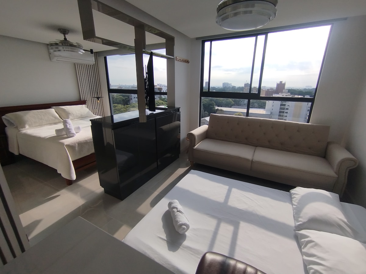 ** UNIDAD EXCLUSIVA SIN CARGOS POR SERVICIO DE AIRBNB ** Bienvenido a nuestro lujoso loft en Cali, inspirado en la naturelza. Con 44m², jacuzzi privado al aire libre y capacidad para 2 personas, es un oasis contemporáneo. Sala, comedor y cocina equipada ofrecen comodidad y estilo. Habitación privada y baño completo garantizan un descanso reparador. Ubicación inmejorable cerca de puntos turísticos.