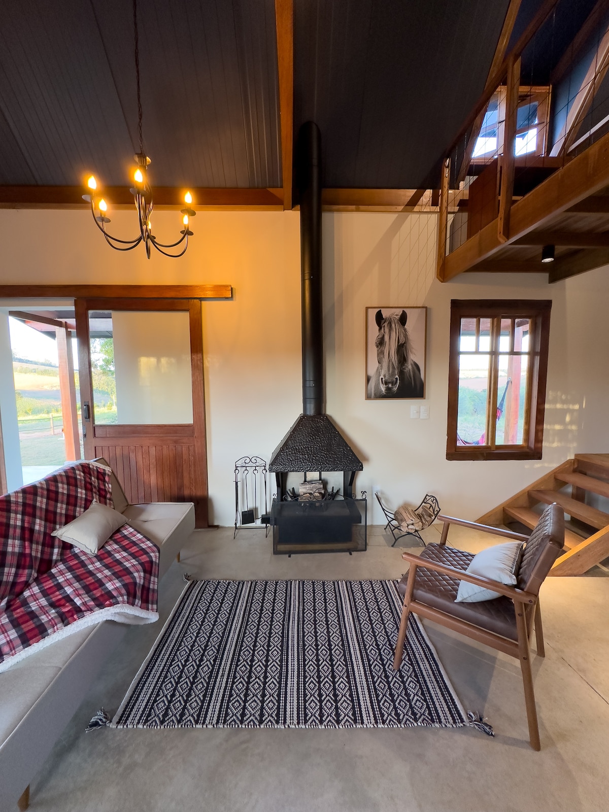 Այս ստուդիան հմայիչ է, որտեղ հյուրասենյակը, խոհանոցը և ննջասենյակը ինտեգրված են մեկ միջավայրում ՝ դարավոր ագարակում, ամբարտակի եզրին, նրանց համար, ովքեր սիրում են առանձնանալ և հանգստանալ ։ Յուրահատուկ տարածք, որը թույլ է տալիս ինտեգրվել Բնության հետ, թույլ է տալիս զբոսնել, հաճույքներ վայելել ամբարտակում և մտածել կռունկների թռիչքի մասին ՝ լուսատտիկների փայլի մասին ։ Այն առաջարկում է կրակից կրակի հետ ջեռուցում, ինչպես նաև արևի ջերմության հաճույք ։ Օդափոխված, լավ պահպանված տարածք
