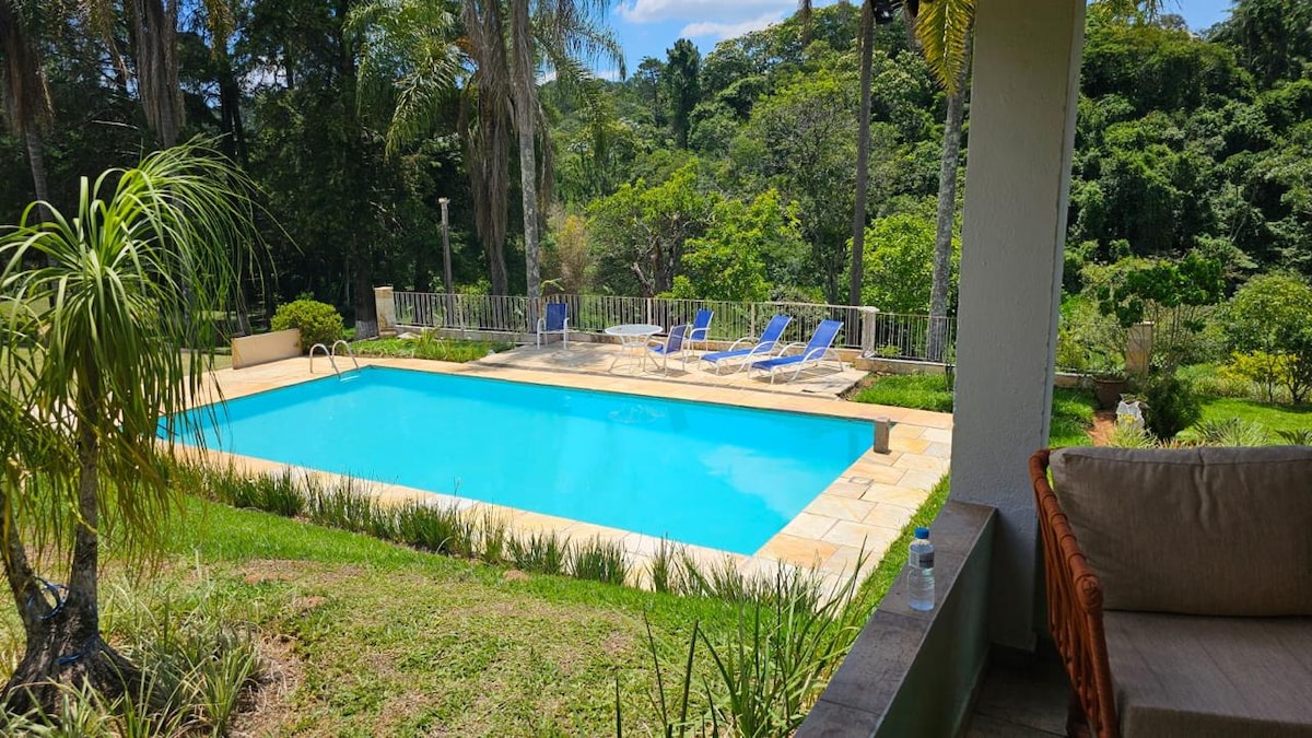 Նոր վերանորոգված մեկ հարկանի տուն բնության գրկում ։ Այստեղ կարելի է շփում ունենալ բնության, ձիերի, ջաբուտիկաբյան այգու և ձուկ որսալու լճի հետ ։ Տարածքն իդեալական է երեխաներ ունեցող ընտանիքների և նրանց համար, ովքեր ցանկանում են անջատվել մեծ քաղաքից Սան Պաուլուից ընդամենը 1 ժամ հեռավորության վրա ։ Տանը կան խոհանոցային պարագաներ, անկողնային սպիտակեղեն և մանղալ պատշգամբում, որը նայում է դեպի լողավազանը և նորակառույց կրպակ ։ Արևոտ օրերին պատշգամբից բացվող տեսարանն առանձնանում է հիանալի մայրամուտով ։