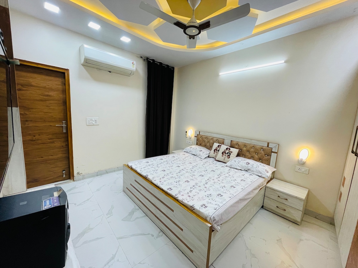 This stylish place to stay is perfect for couples and familes This is a peaceful & luxury independent floor built in 110sqyd ,located in shalimar bagh . with High speed wifi Just 2-3 mins drive for FORTIS & MAX Hospital shalimar bagh Following amenities are on walking distance Medical store Salon 10 mins drive to pacific mall nsp 10 mins drive to Elegante mall nsp 1 bedroom 1 living room Open space for relaxing Induction , Electric kettle , fridge and cuttlery are available.