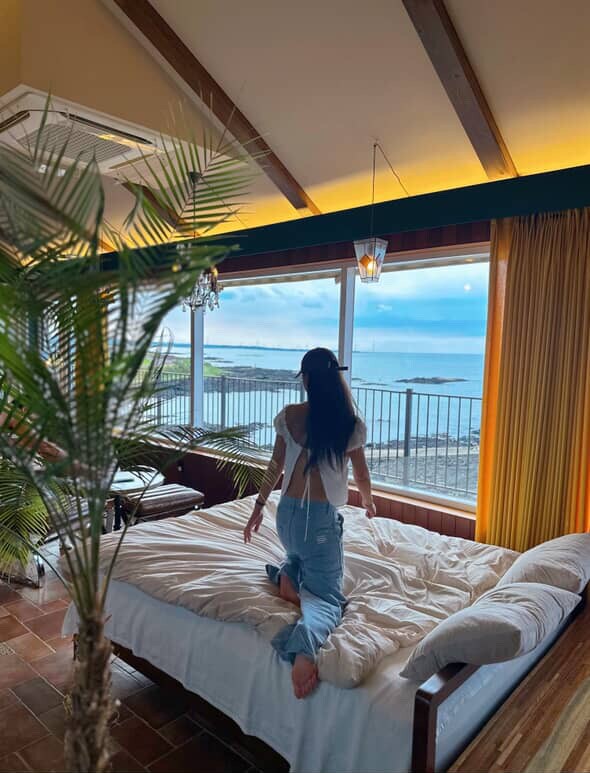 Պատուհանից բացվող ծովի տեսարանն այնքան գեղեցիկ է, որ ինձ դիպչում է լուսաբացի, առավոտյան, կեսօրին, երեկոյան և գիշերային ծովի յուրաքանչյուր պահի ։ Մարգագետնի քարե պատի վրայով երեկոյան մայրամուտի զմայլանքն աննկարագրելի է ։ Հավելվածի տանիքից վայելեք Ջեջու Օուոլի մայրամուտի ծովը ՝ միաժամանակ խմելով Բուլմունգի և լոբու սուրճ ։ Դուք կհիանաք Ջեջուի բնության գեղեցկությամբ ։ Սենյակը, որն այժմ տեսնում եք, ապակե օվկիանոսի տեսարանով լի սենյակ է ։ --------------------------- [Սենյակի առանձնացման ցուցումներ] Մեր կացարանը բաժանված է հիմնական տան և հավելվածի ՝ կիսելով բակ ։ Ocean View - ը (հավելված) տանիքում A - շրջանակով շենք է, իսկ հիմնական շենքը հենց դրա կողքին գտնվող սպիտակ շենքն է, որի բակում մեծ տախտակամած է ։ Հավելվածի տանիքի տանիքը համօգտագործվող տարածք է հիմնական շենքում և առանձնատներում գտնվող հյուրերի համար ։ * Եթե մտահոգ եք քնելու, քանի որ մահճակալը բարձր է, կարող եք տանտիրոջից պահանջել մահճակալի պահակախումբ ժամանումից մեկ օր առաջ ։ Խորոված, հրավառություն կարելի է կիրառել նախապես (կա լրացուցիչ ծախս)