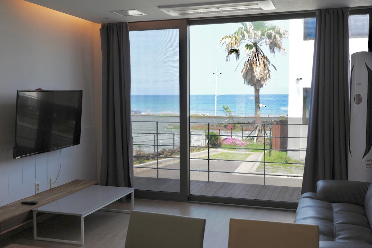 Այն էկզոտիկ մթնոլորտ ունեցող Ջեջուի նման հուզական կացարան է ։ Ձեր մահճակալից երևում է ծովի արևածագը քարե պատի վրայով, և դա էկլեկտիկ կացարան է, որտեղ կարող եք վայելել լողավազանը և ջակուզի ՝ նայելով ծովին: Դա մի վայր է, որտեղ կարող եք բավարարել գինու մթնոլորտը ՝ բուխարիով: Բավական է մեծ ճառագայթով և Bluetooth բարձրախոսով միջոցառում ստեղծել, և այն լցված է մաքուր բնության մեջ, այնպես որ գիշերը կարող եք տեսնել լուսատտիկներ, իսկ աստղային լույսը հուզական կացարան է, որտեղ կարող եք գիշերը վայելել երկինքը Ջեջուում: Մոտակա տեսարժան վայրերից են Bijarim - ը, Seongsan Ilchulbong Peak - ը, Udo - ն, Seopjikoji - ն, Rabbit Island - ը, Sehwa Beach - ը, Darangshi Oreum - ը, Ajung Darangshi Oreum - ը, Jimibong Peak - ը, Seowoobong Peak - ը, Hamdeok Beach - ը, Maze Land - ը, Secret Forest - ը, Gwangchigi Beach - ը, Bunker of Light - ը, Sangumburi - ն և Eco Land - ը: ^^~. հարցում ♤ կացարանի/ուղեցույցի վերաբերյալ Եթե Airbnb - ում SMS - ով կապվեք մեզ հետ, ուրախ կլինենք ուղղորդել ձեզ ։