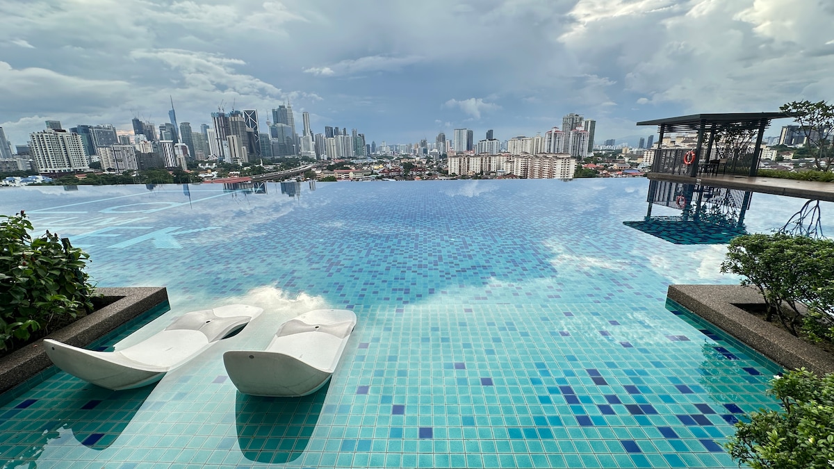 Enjoy a stylish experience at this centrally-located place: - 10 mins walk from KLCC Twin Tower - 5 mins drive from KLCC Twin Tower - 5 mins drive to Pavilion Shopping Center - Near the Bukit Bintang Food Paradise and Entertainment Center - Majestic KLCC view (from the pool area) Facilities: - 55" TV with Netflix access - Infinity pool overlooking KLCC Twin Towers, KL Tower & night skyline - Jacuzzi and Pool lounge - Gym access - Fast wi-fi connection - Hot water - Air conditioner