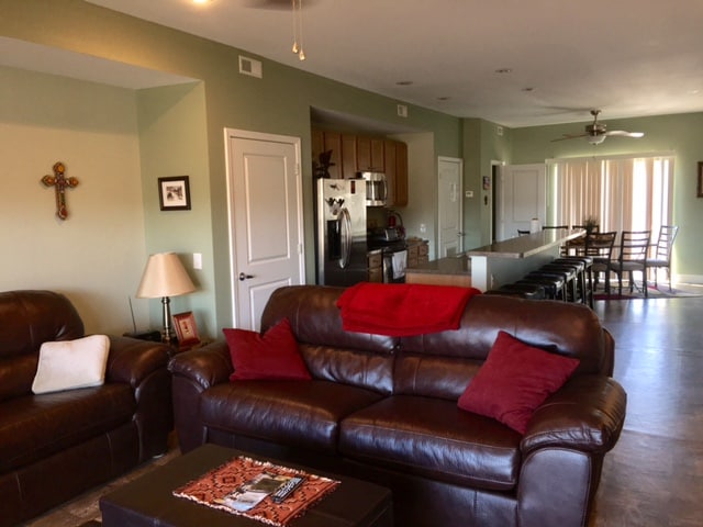 Looking for a cozy and comfortable getaway? Pelican's Perch is nestled in the bluffs along the confluence of the Illinois and Mississippi rivers. Watch beautiful sunsets, bald eagles or river barges right from your own covered deck. Enjoy wineries, restaurants, bars & shopping -- all within walking distance. This beautifully decorated 3-bedroom condo is ideal for families, couples, business travelers or girls' or guys' weekends.
