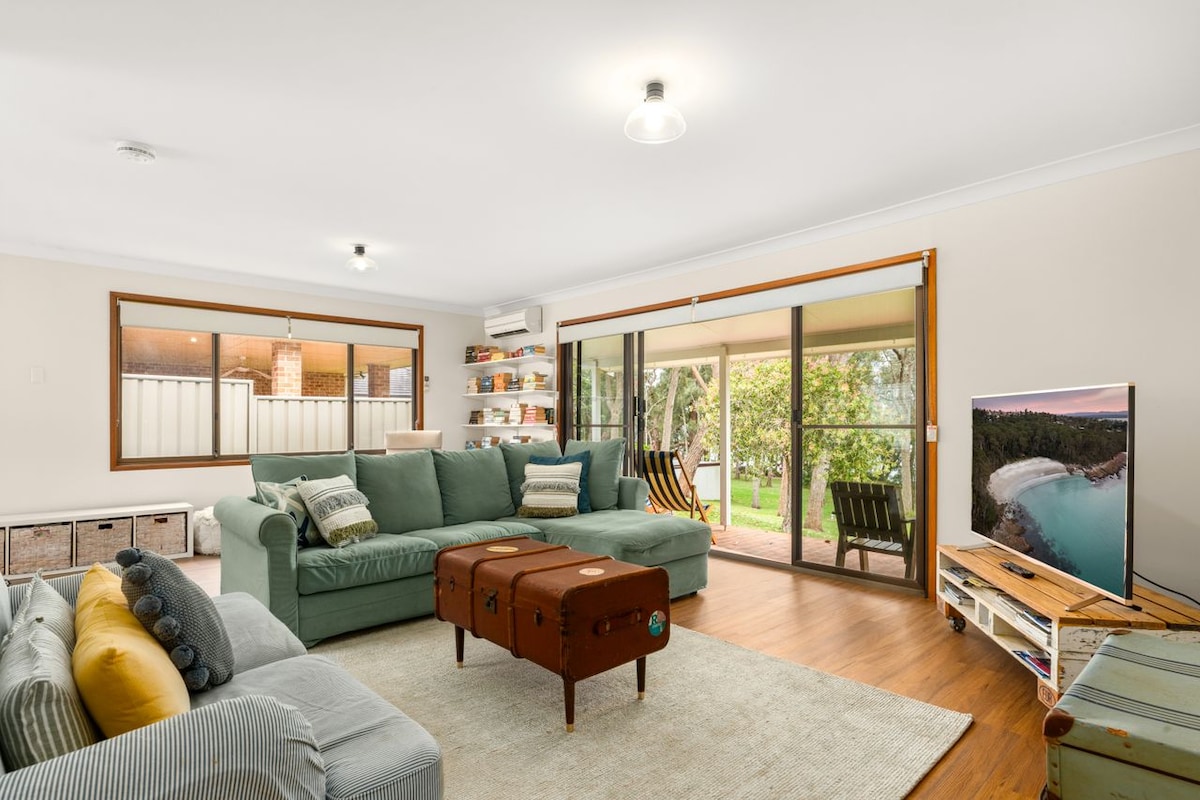 Նախատեսված է բոլորին համախմբելու համար Ոտքով րոպեներ մինչև սրճարաններ, ռեստորաններ, RSL, պանդոկ, SwordFish գարեջրի գործարան, լողափեր և գետ Հիմնական տանը 4 ննջասենյակ ՝ 2 x եռակի բունկերով, աութհաուսում և ավտոտնակում առաջարկում է մեկ այլ ննջասենյակ կամ լոգասենյակ ։ Բացօթյա ժամանցային տարածք, որտեղ ձեր ժամանակի մեծ մասը կանցկացնեք ցրտաշունչ: Սկզբնական լոգասենյակներով և խոհանոցով. սա բոլորովին նոր տուն չէ, բայց այն շատ բան ունի առաջարկելու ավտոտնակի/ խաղերի սենյակի հետ միասին, հիանալի բակ երեխաների և շների համար ՝ ներառյալ կրակադաշտը: