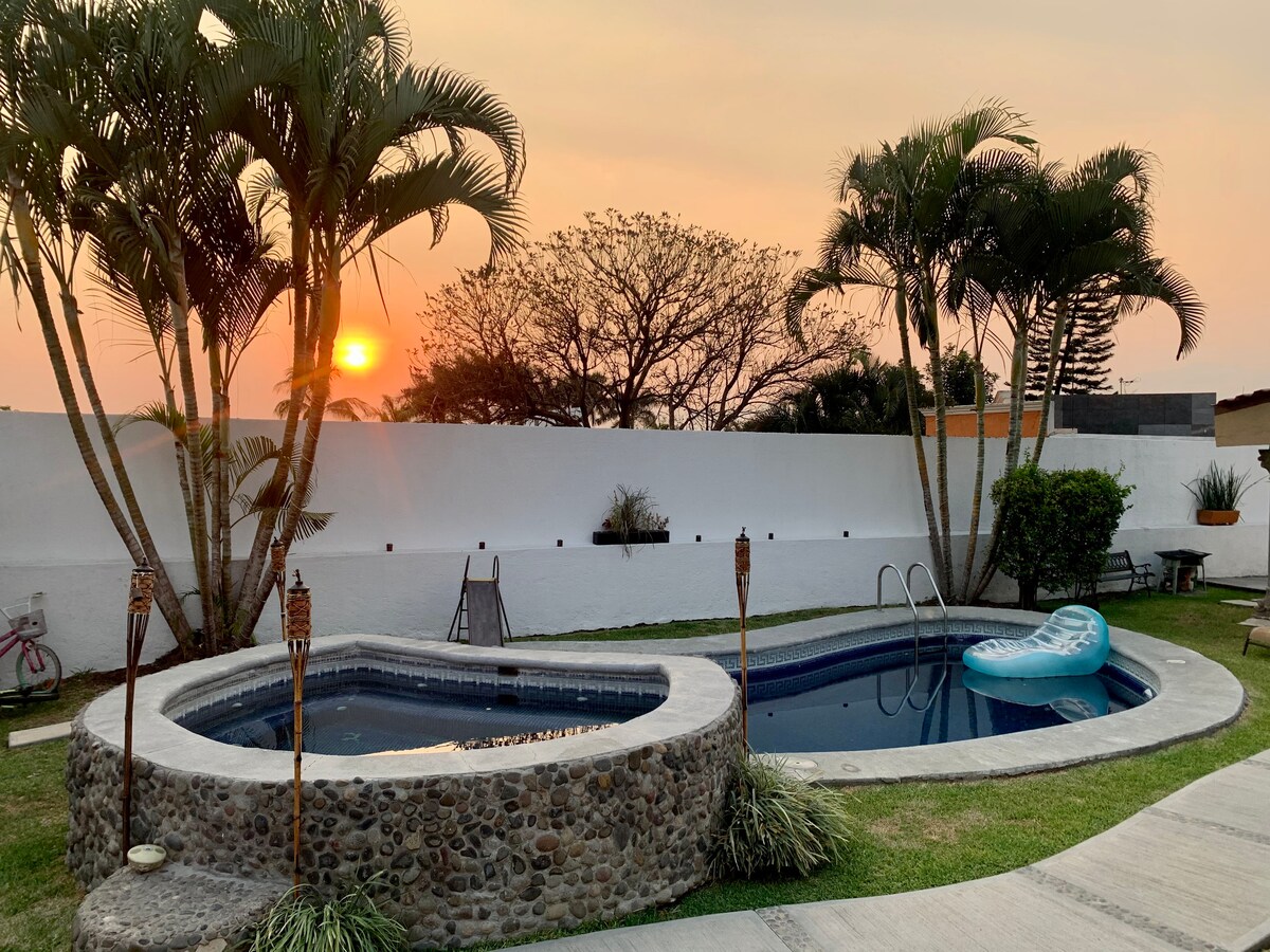 Քաղաքի մոտակայքում և բազմաթիվ հնագիտական վայրեր(Xochicalco , Tepoztlán, Teopanzolco), մշակույթ, տիպիկ ռեստորաններ, արվեստ և բանահյուսություն: Մեքսիկո Սիթիից 1 ժամ հեռավորության վրա: Գեղեցիկ փոքրիկ տուն ՝ այն ամենով, ինչ անհրաժեշտ է անկախ ապրելու համար ՝ դրսում հիանալի լողավազանով, ջակուզիով և ճահճային լողավազանով ։ (Ուշադրություն դարձրեք, որ բունգալոն ավելի մեծ պրեժի ներսում է): Կարող է տրամադրվել ձեր ընտանիքին և իդեալական է երեխաների,զույգերի և գործարարների համար ԱՌԱՆՑ ԵՐԵԿՈՒՅԹՆԵՐԻ, ԱՌԱՆՑ ՏՆԱՅԻՆ ԿԵՆԴԱՆԻՆԵՐԻ Բարի գալուստ