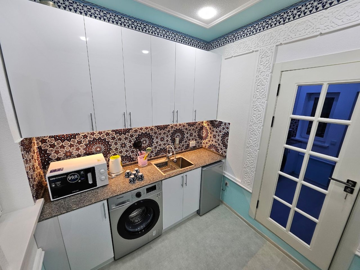 **🌿 Հարմարավետ բնակարան Սամարկանդի սրտում** Ձեր կատարյալ հանգիստը սկսվում է այստեղ ՝ պատմական կենտրոնում նոր վերանորոգմամբ լուսավոր բնակարանում ։ Ընդամենը 5 րոպե ոտքով մինչև լեգենդար ** Սիաբի բազար** իր անուշահոտ համեմունքներով և 10 րոպե մինչև փառահեղ **Ռեգիստան **։ Ձեզ հասանելի է ՝ ✔ Մաքուր և հարմարավետ տարածք ✔ Մինի - սեյֆ թանկարժեք իրերի համար ✔ Ես ժամանակավորապես հյուրերի գրանցում եմ անում (գրանցման վճար է գանձվում)
