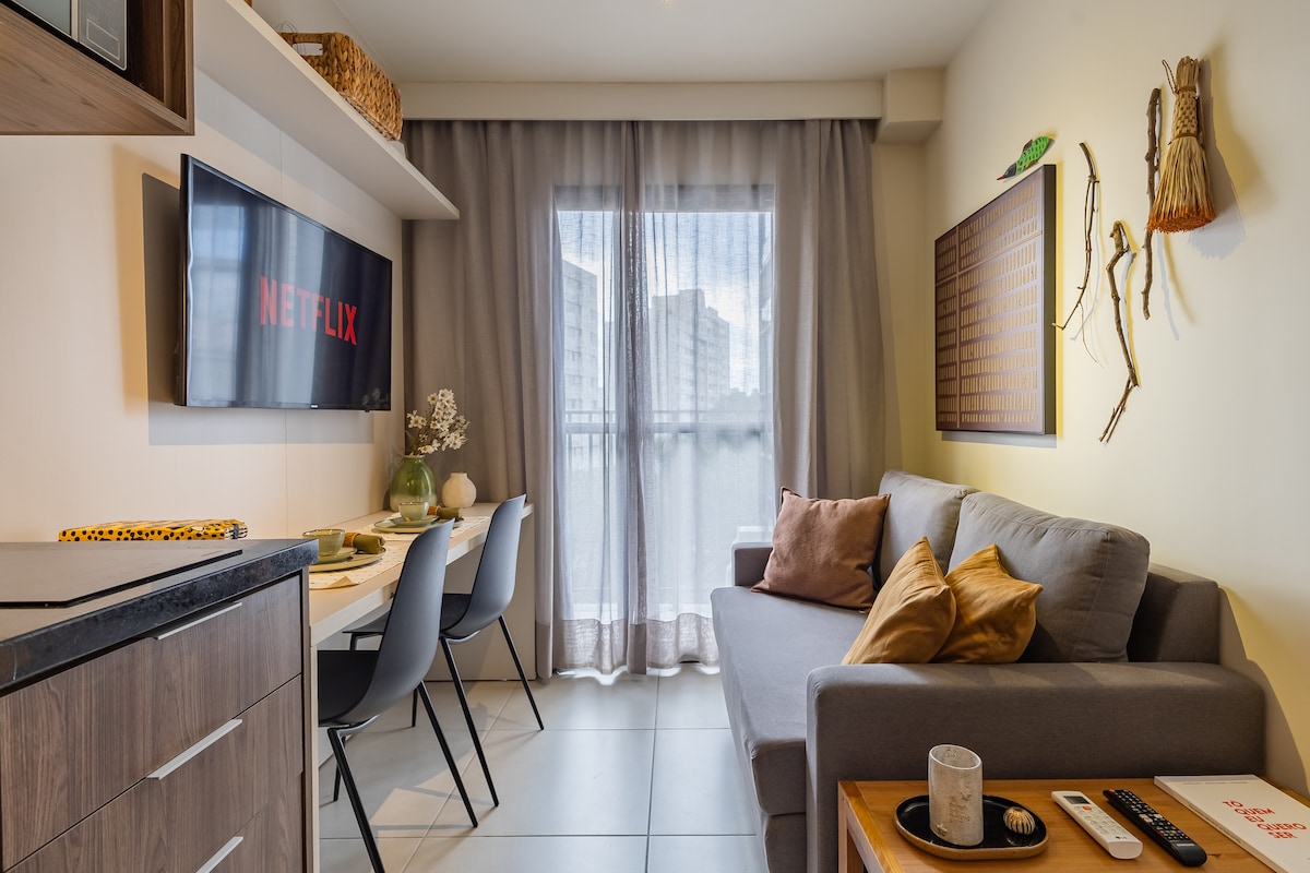Our newly renovated apartment in the heart of trendy Jardins is sure to impress with its sleek modern design, comfortable amenities, and prime location. Located in a charming mid-century building, you’ll be just steps away from the best dining, shopping, and entertainment in São Paulo. Whether you’re looking to relax or be productive, this apartment has everything you need for a truly enjoyable stay, including a very comfortable workspace, and very quiet bedrooms.
